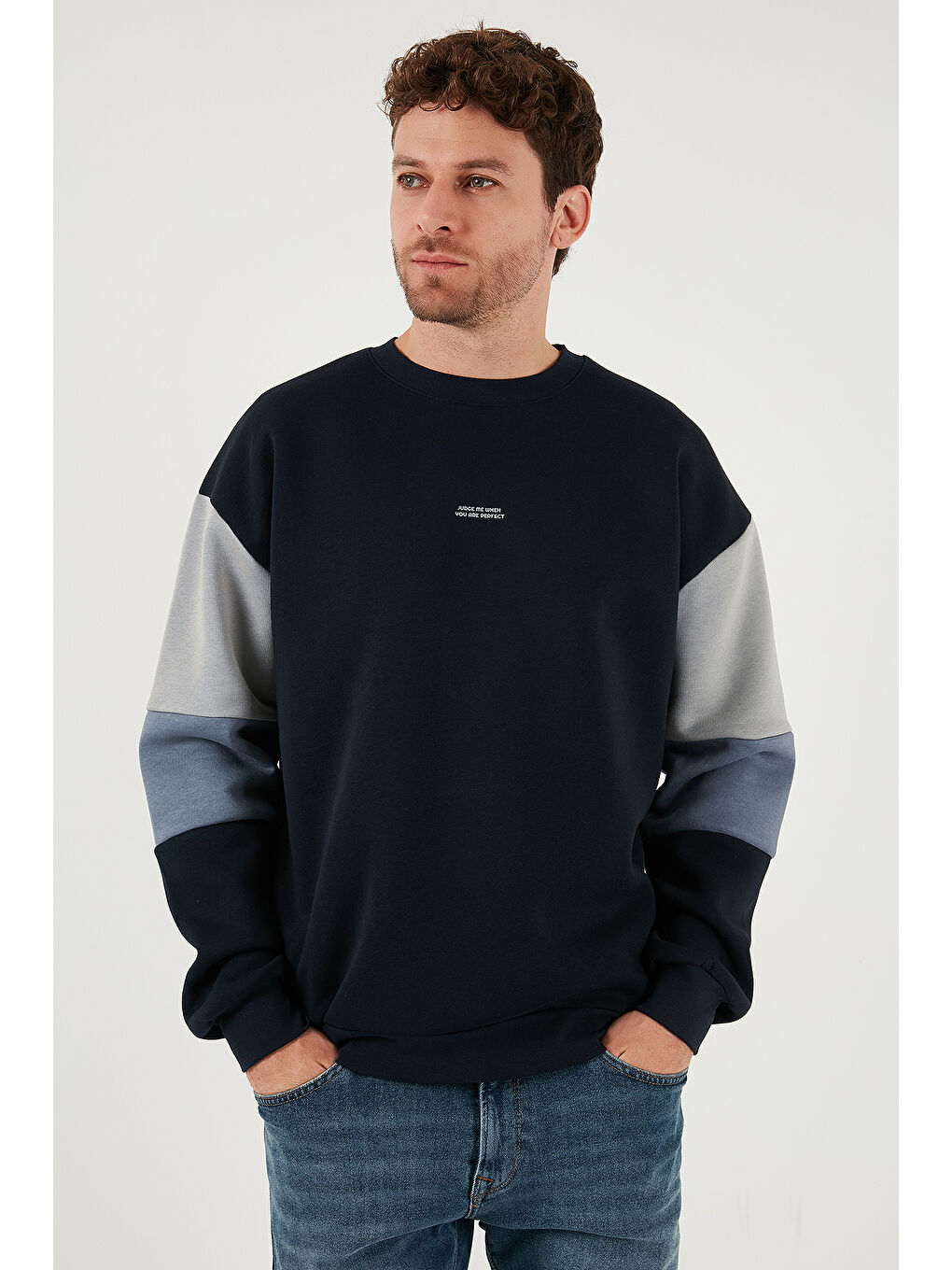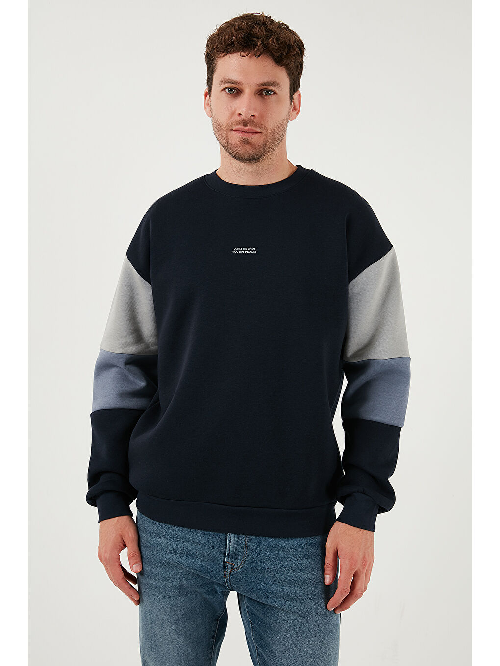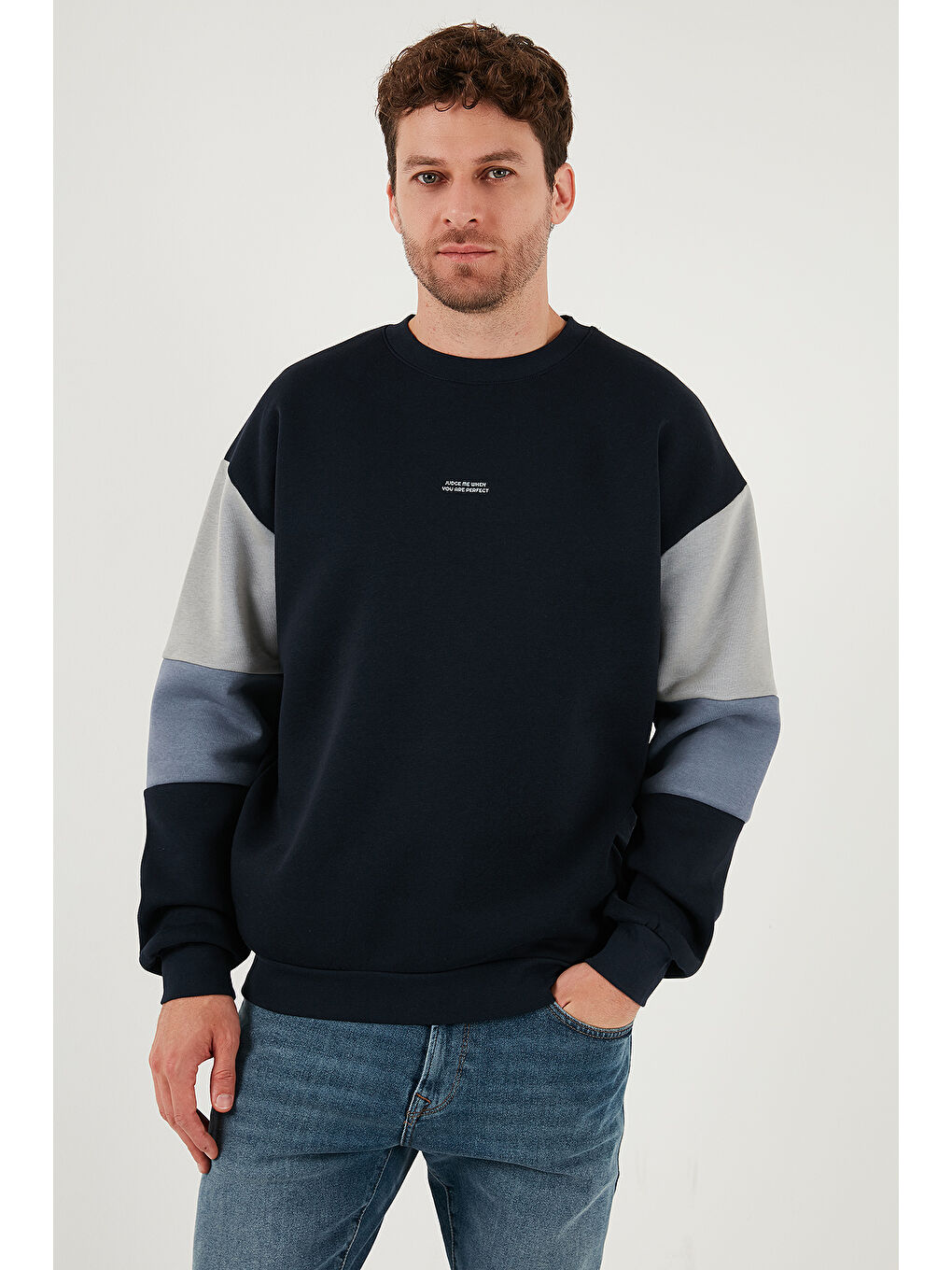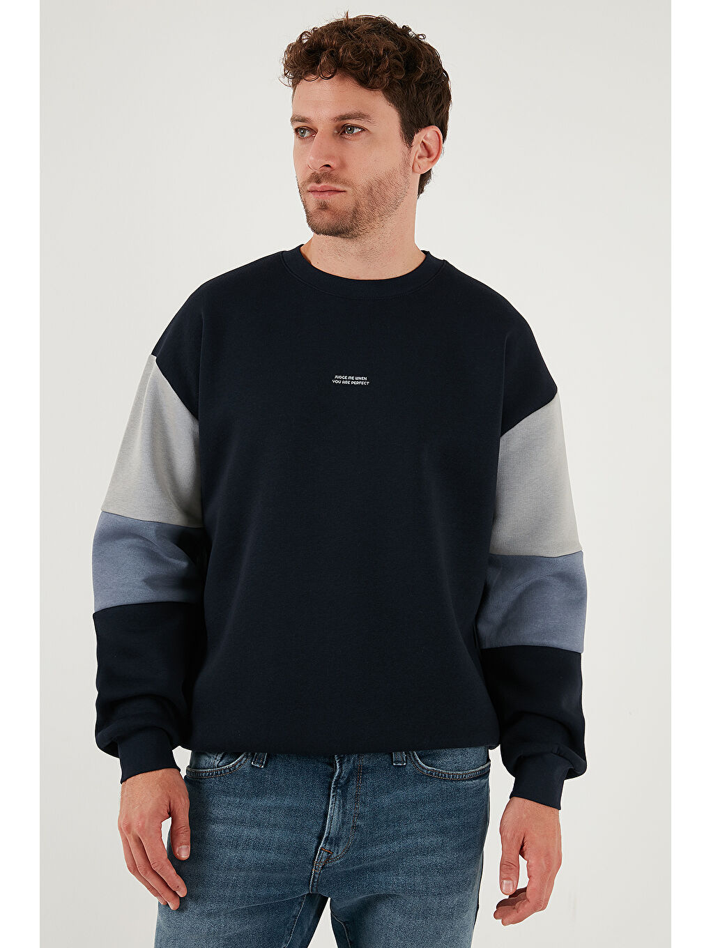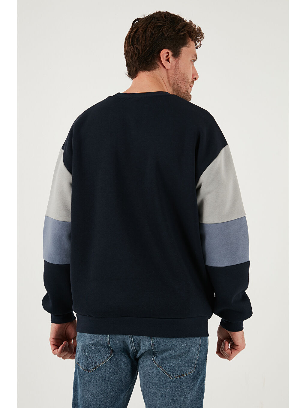 سویشرت نخی سرمهای، یقه گرد، طرحدار، رنگ برجسته، کد ۵۹۰۵۲۹۸T