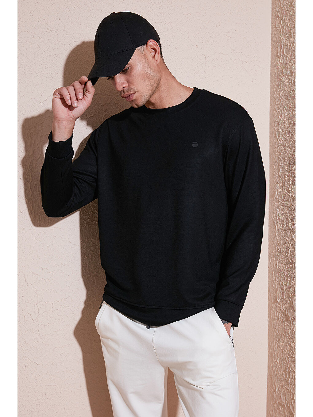سویشرت آستین بلند یقه گرد مشکی معمولی 5901066