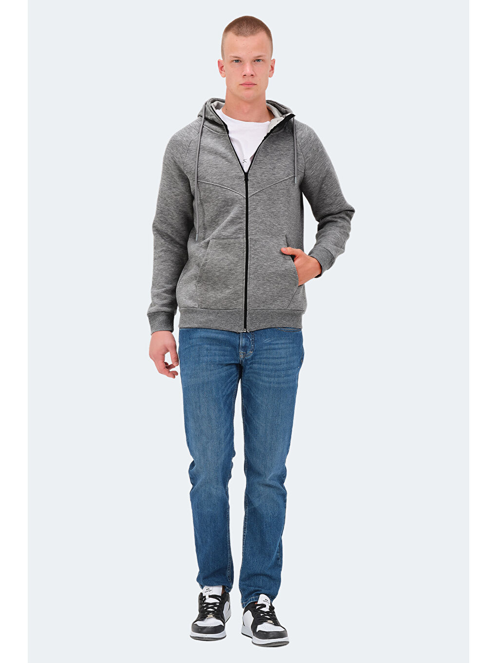 سویشرت زیپ‌دار مردانه KAZUE I به رنگ خاکستری تیره