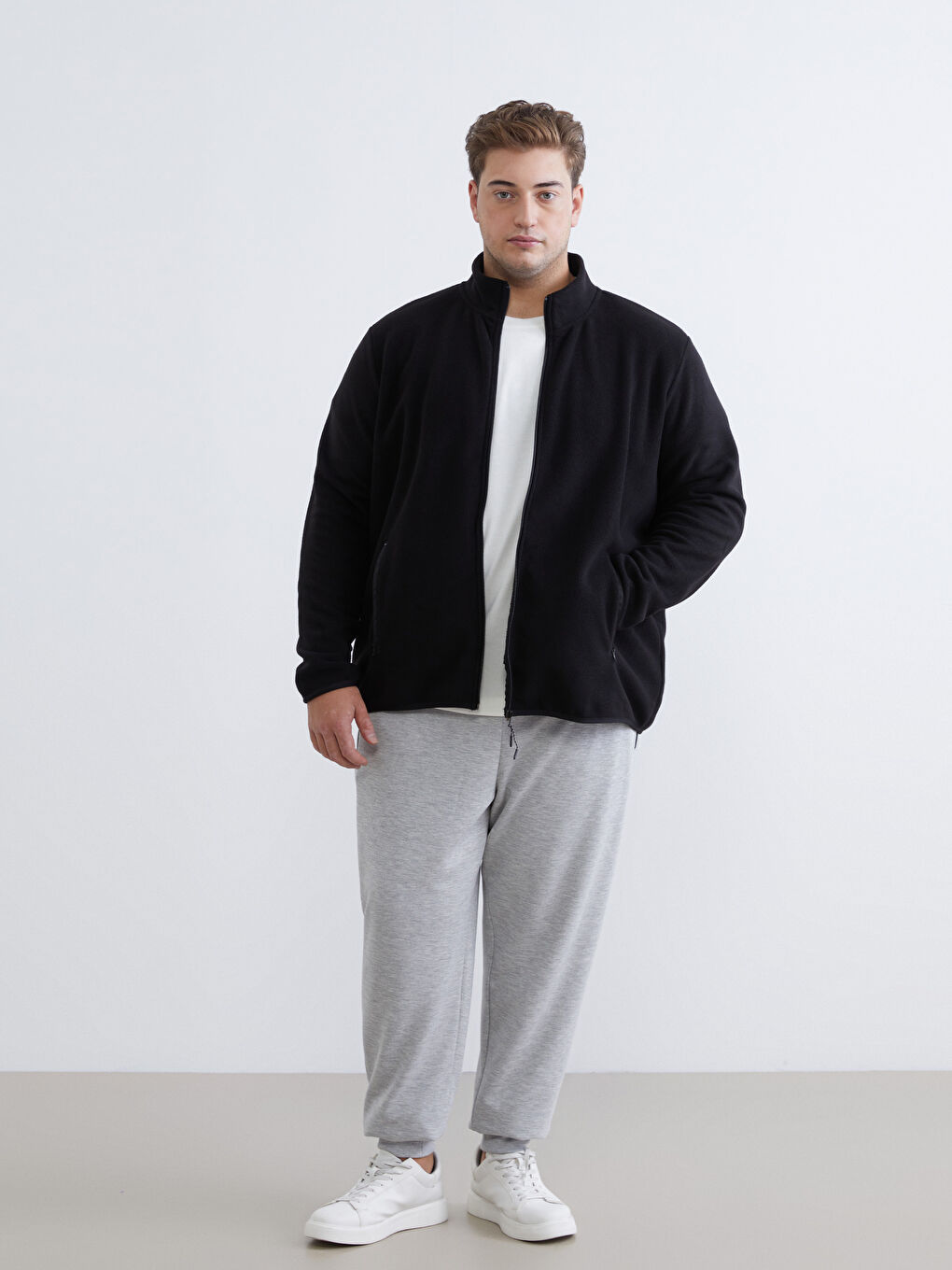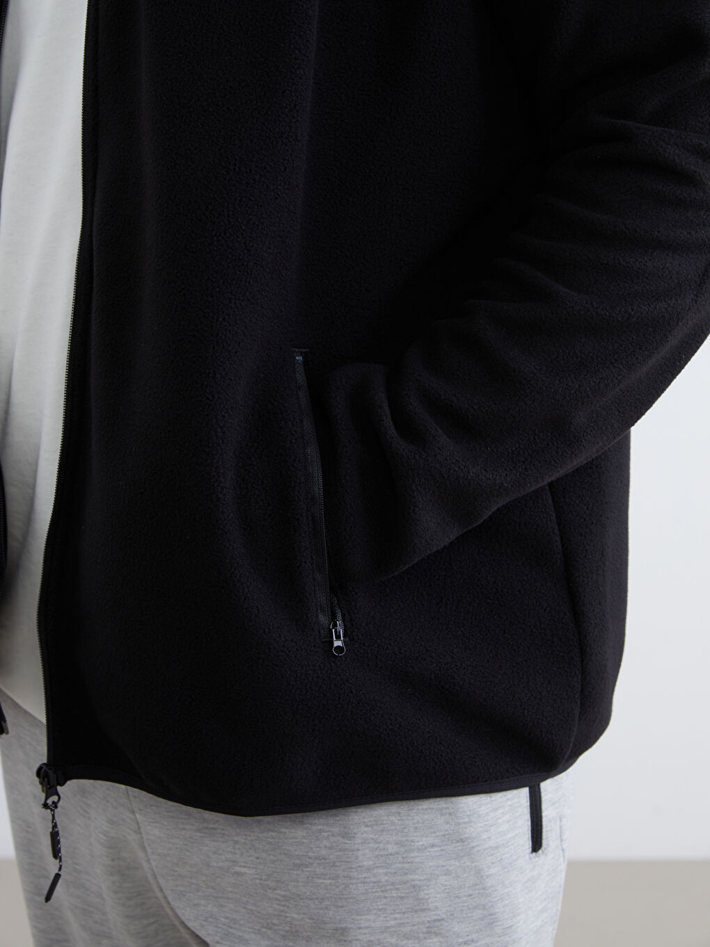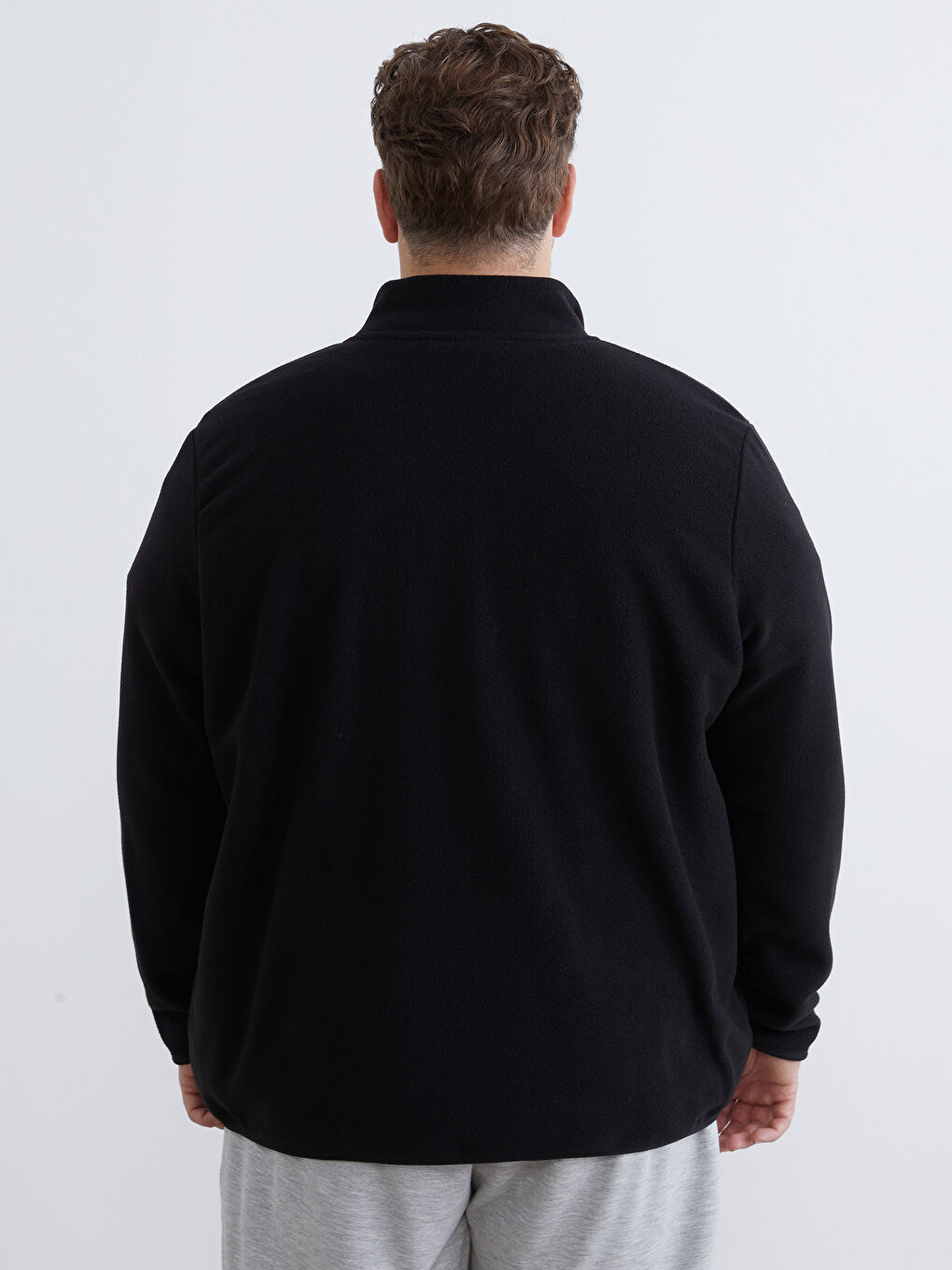 سویشرت زیپدار مردانه از جنس پشم قطبی، یقه ایستاده و استاندارد مشکی