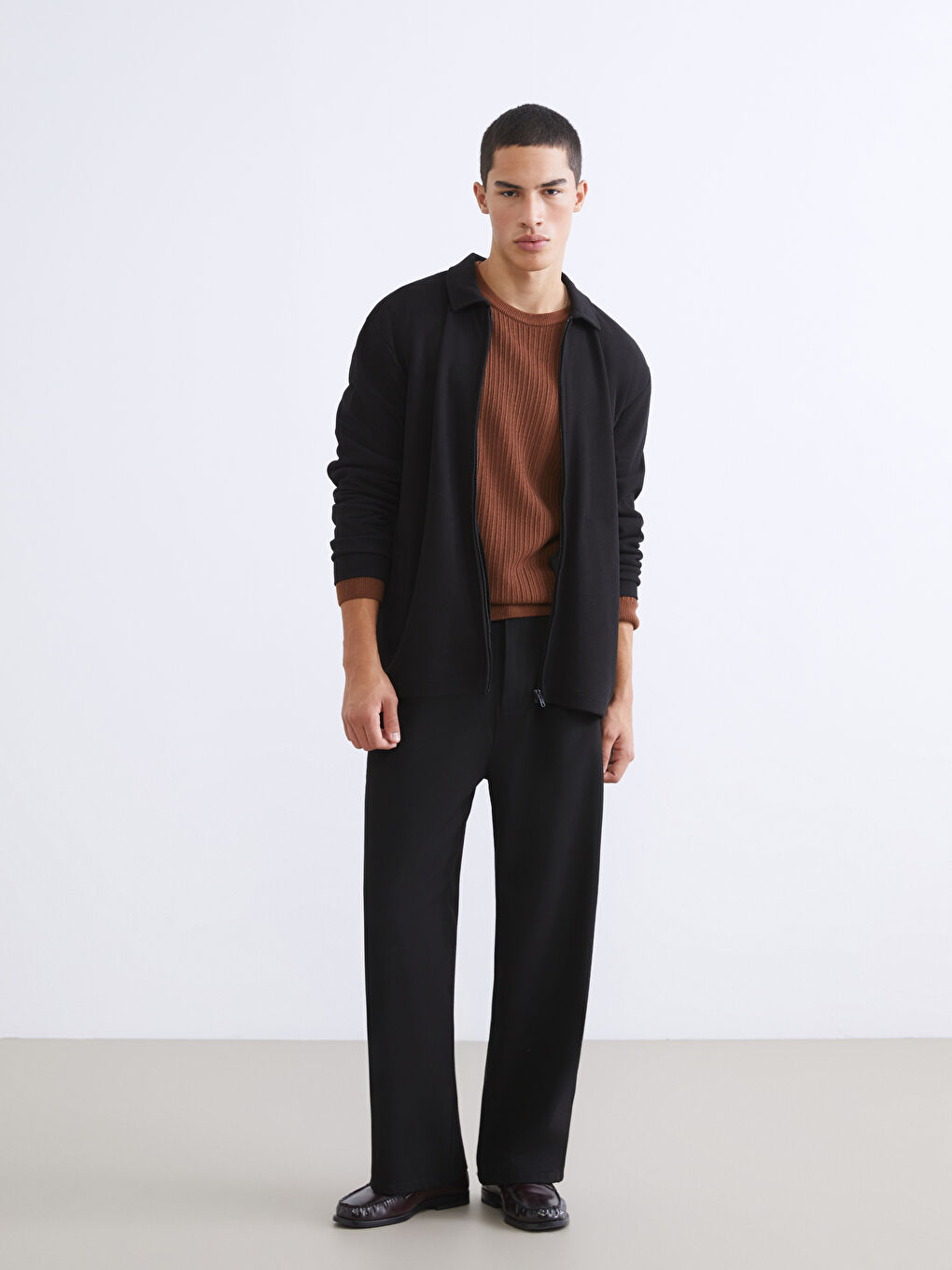 سویشرت زیپدار مردانه یقه پولو مشکی