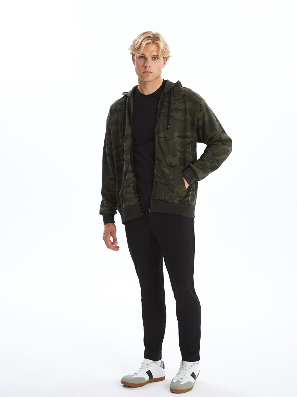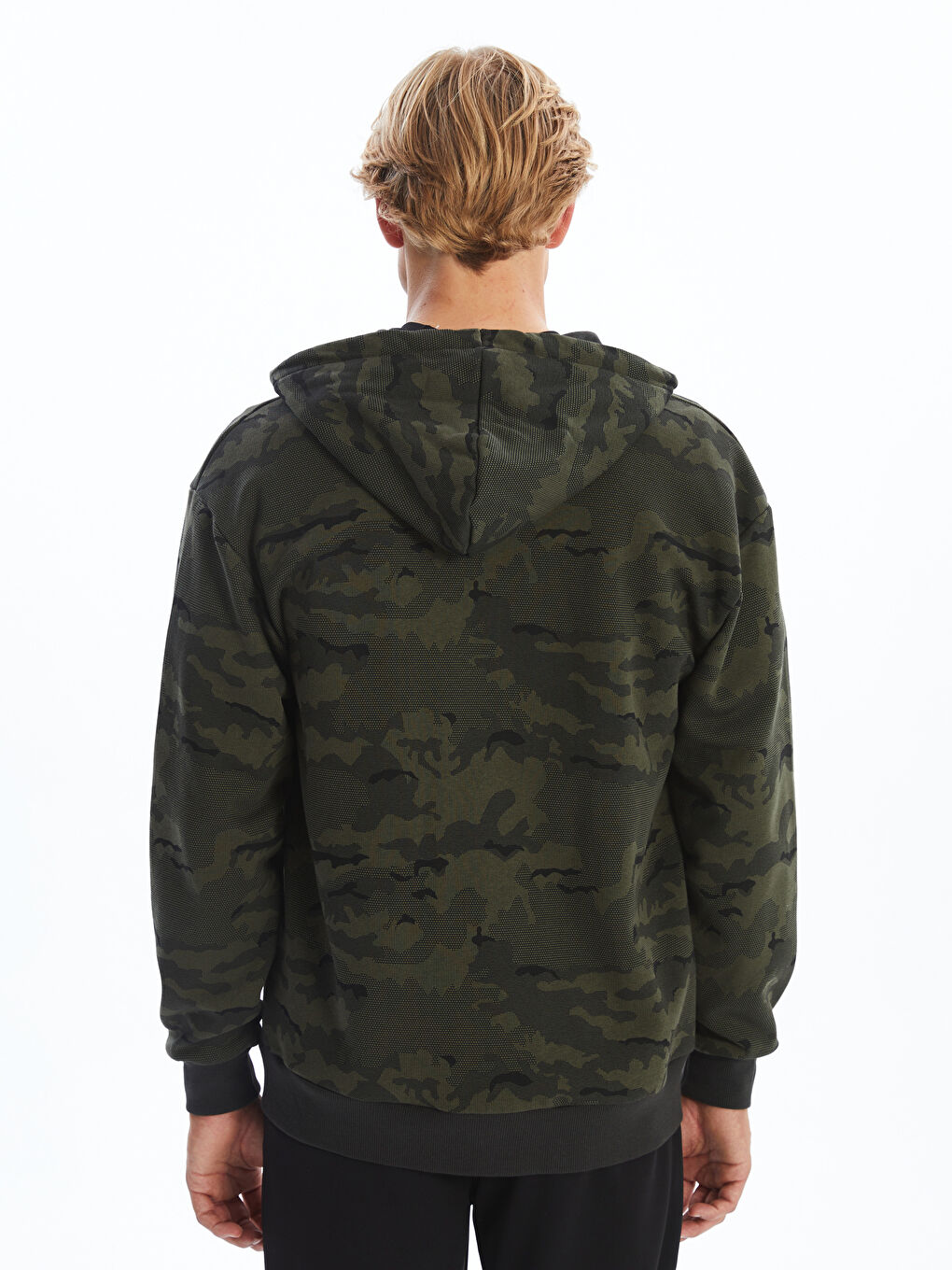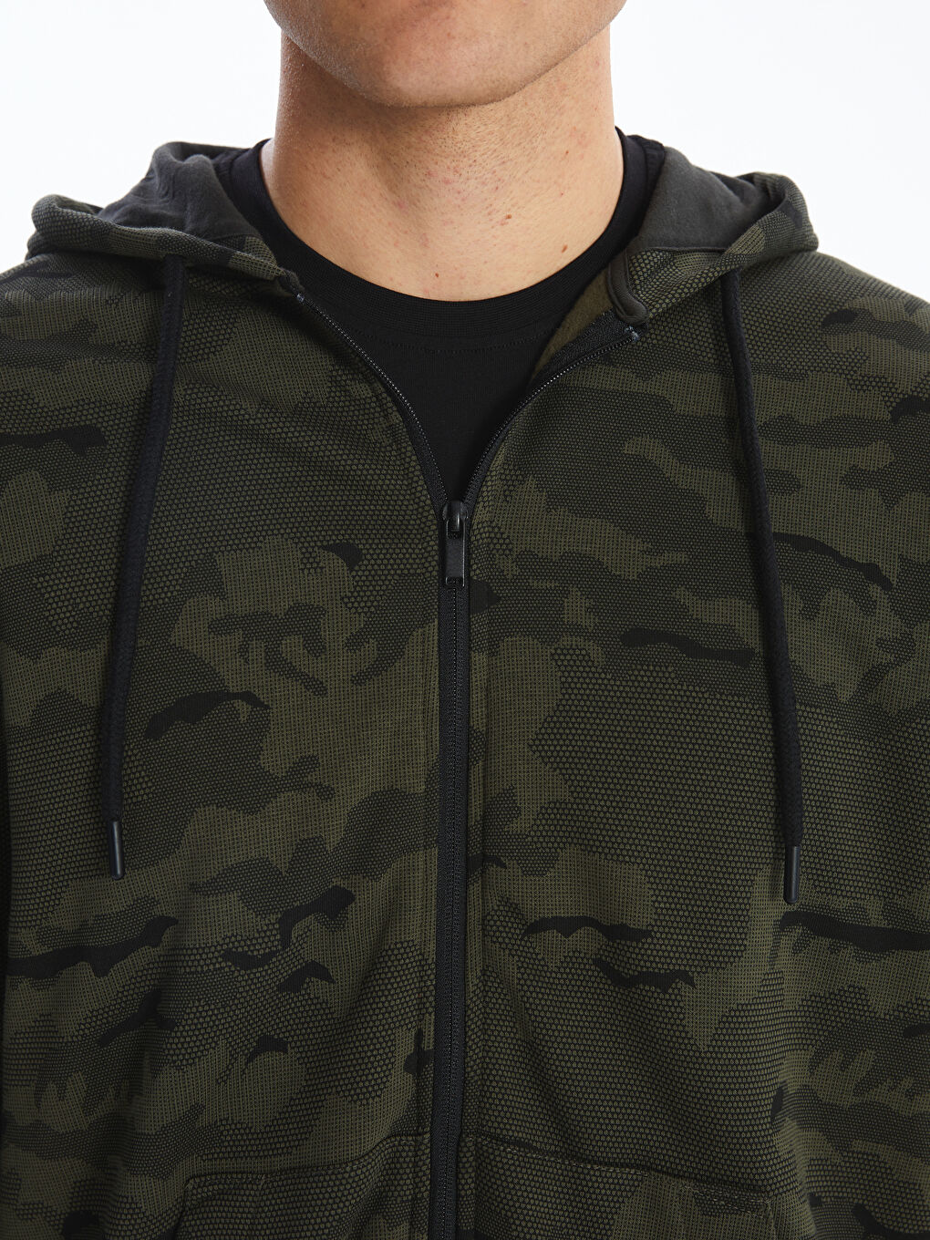 سویشرت زیپدار مردانه آستین بلند کلاهدار خاکی