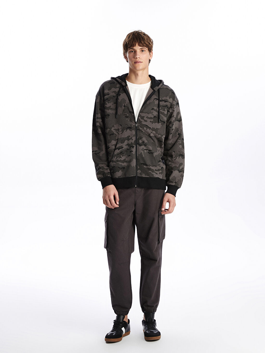 سویشرت زیپدار مردانه کلاهدار آنتراسیت آستین بلند