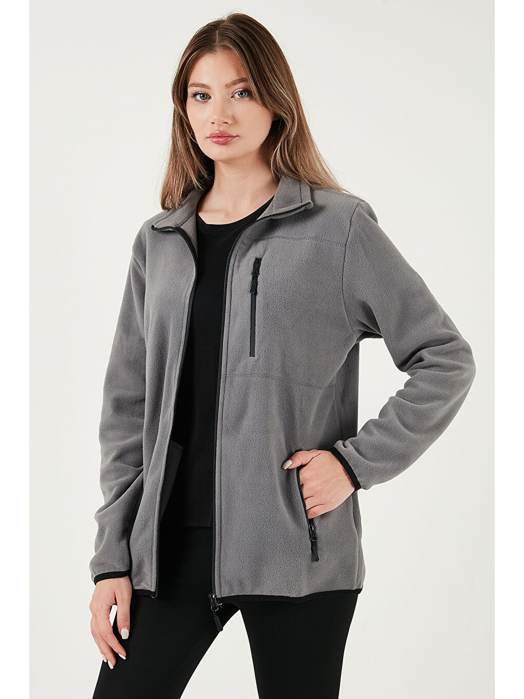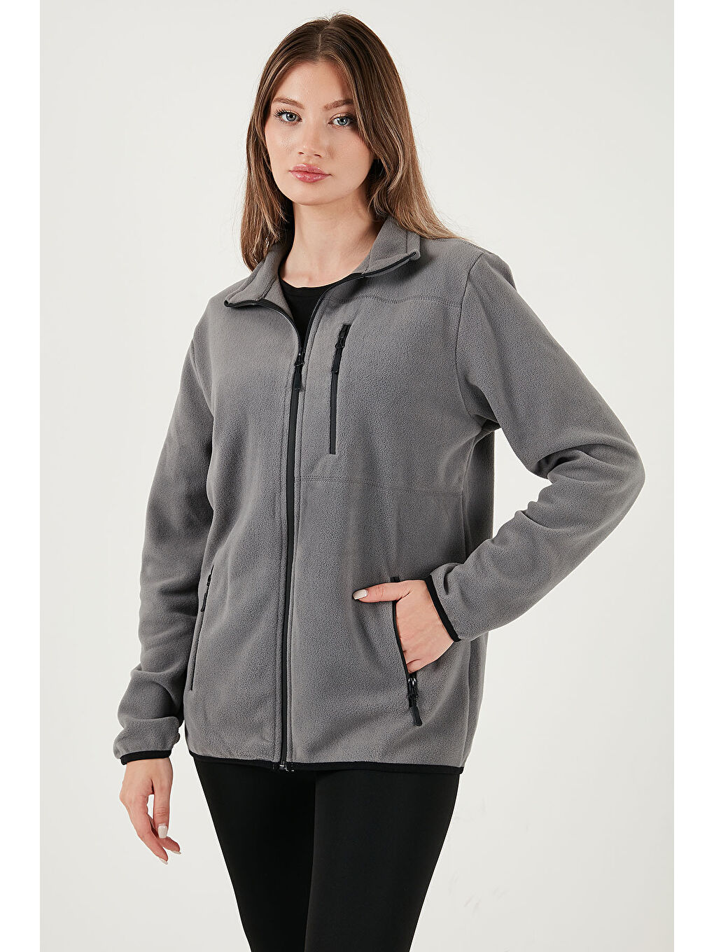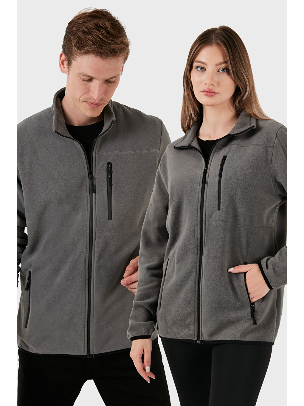ژاکت پشمی یقه گرد خاکستری باریک، زیپ دار، ضد پرز، بدون پرز، ضد سرما، کد ۵۹۰۶۰۲۸S۱