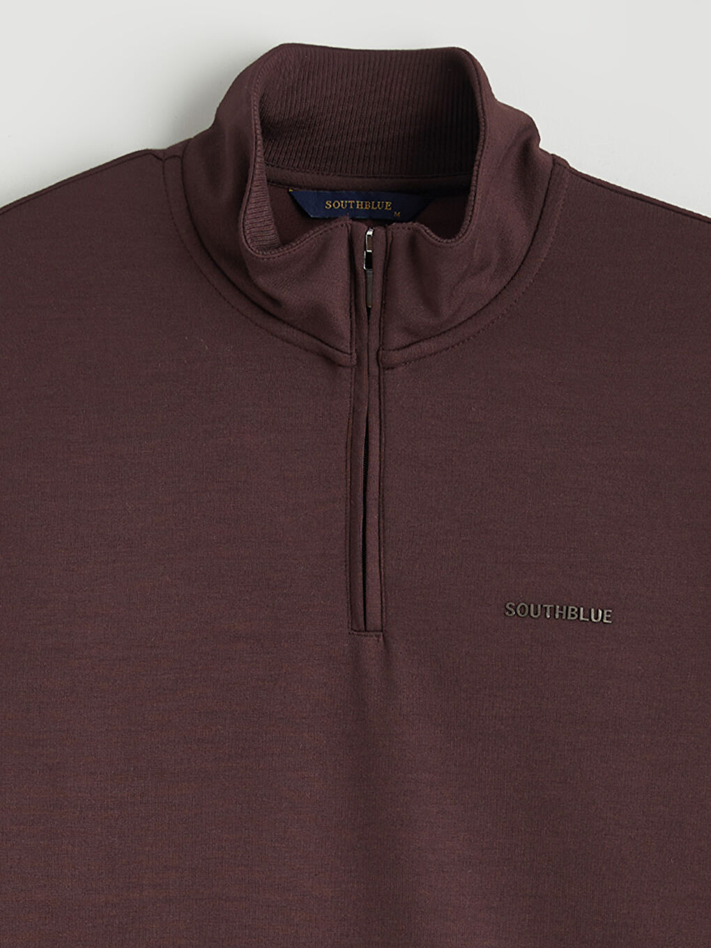 سویشرت مردانه قهوهای زیپدار یقه ایستاده