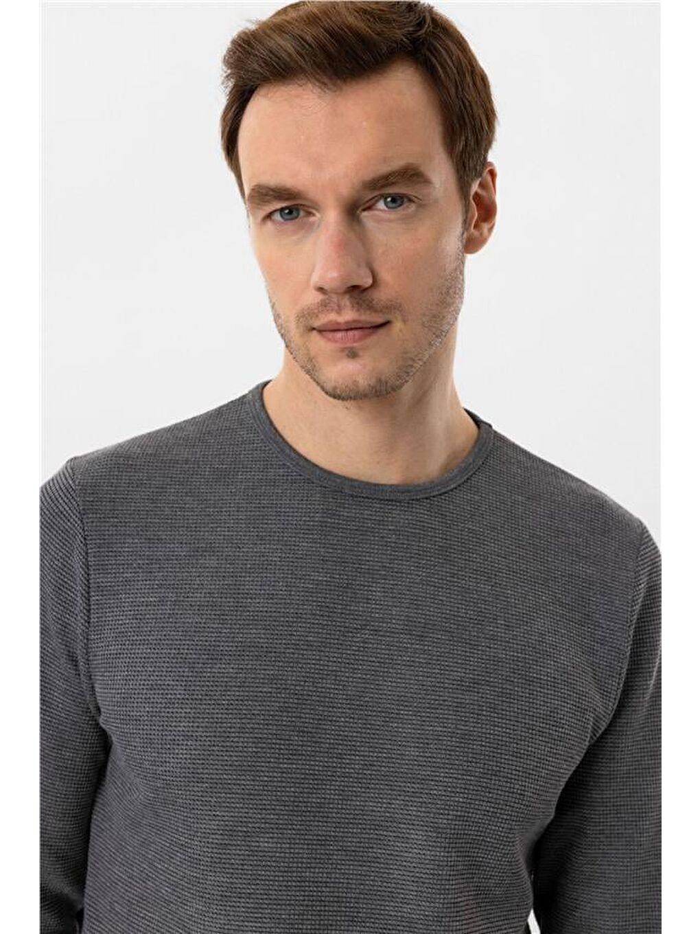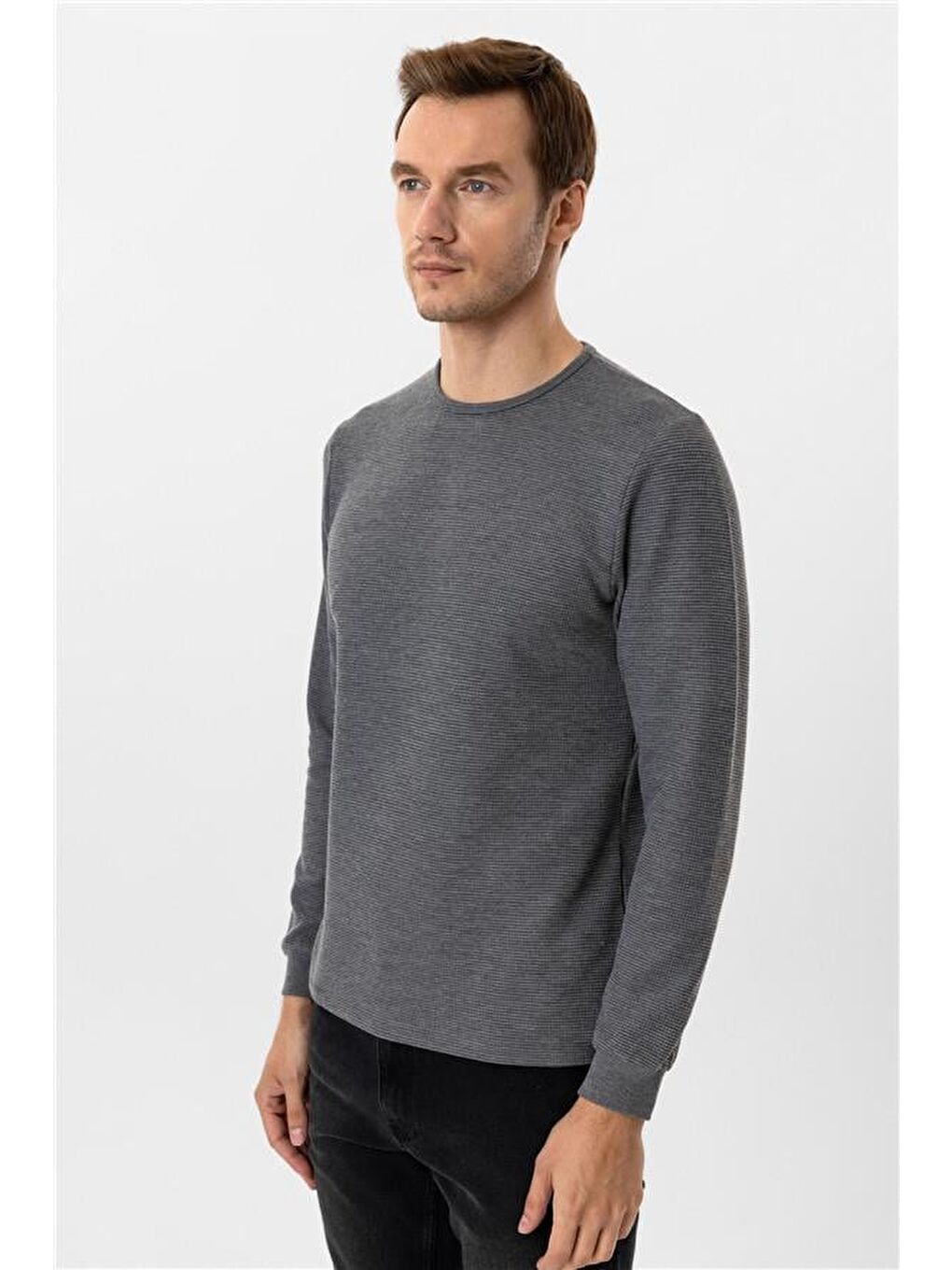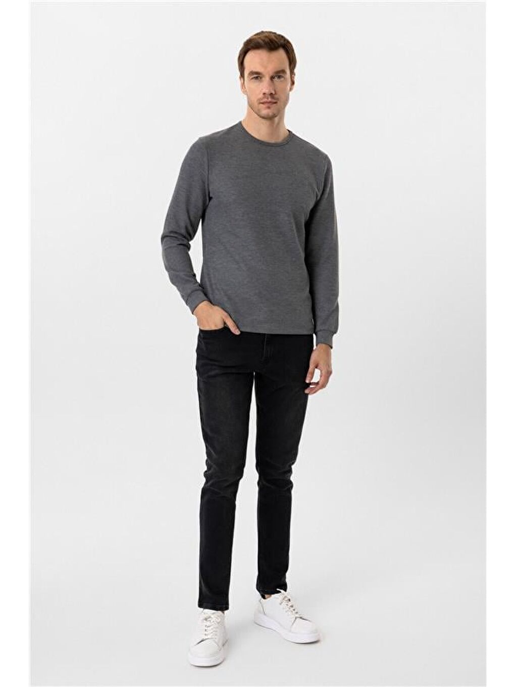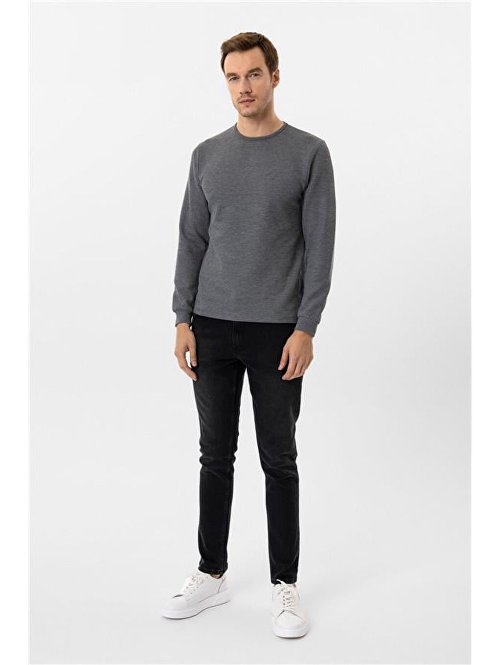 سویشرت یقه گرد اسلیم خاکستری طوسی
