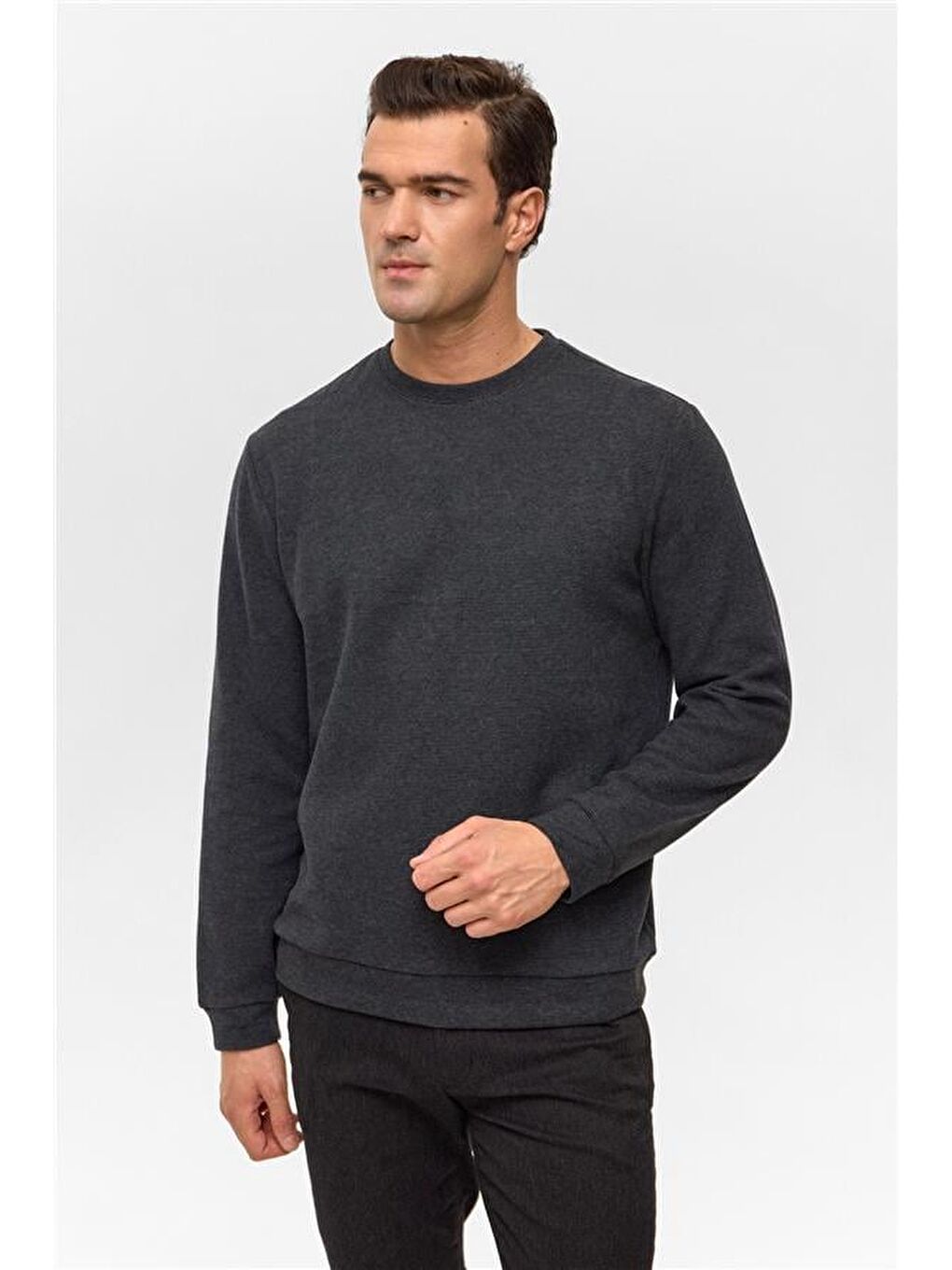 سویشرت یقه گرد ساده معمولی آنتراسیت