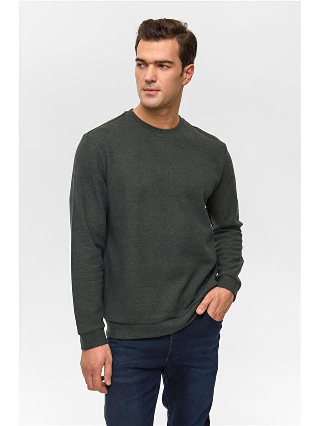 سویشرت یقه گرد ساده خاکی خاکی معمولی