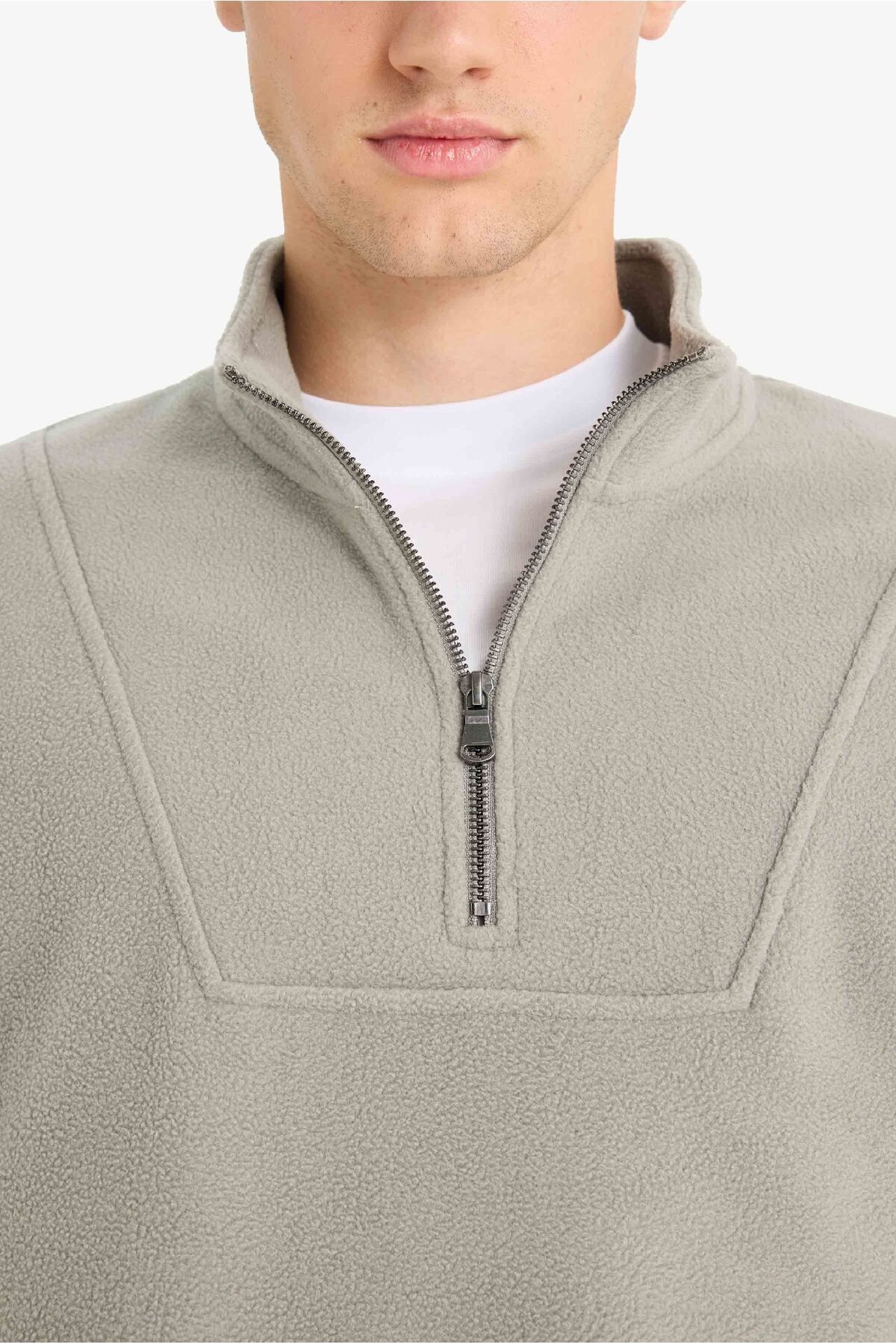 دفاکتو سویشرت پشمی نیم زیپ یقه ایستاده مدل Boxy Fit E8632AX25WN