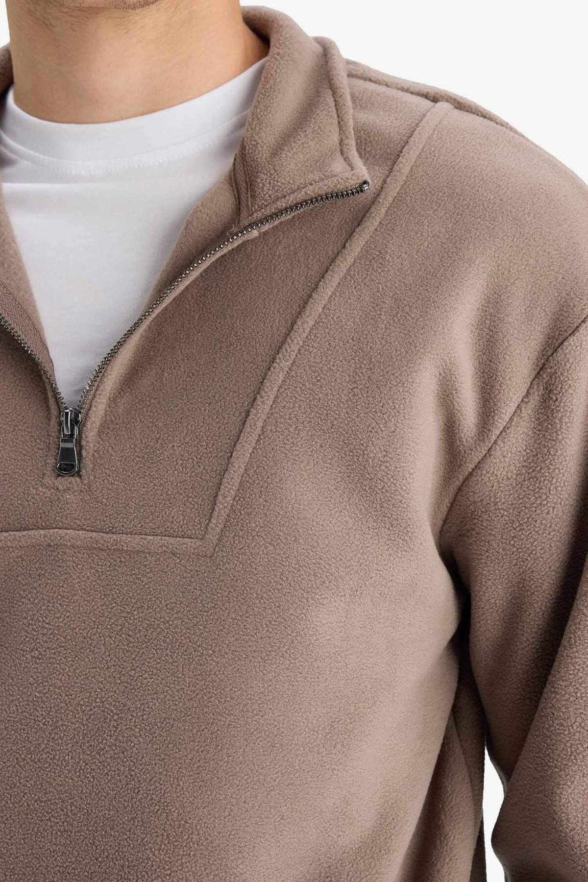 دفاکتو سویشرت پشمی نیم زیپ یقه ایستاده مدل Boxy Fit E8632AX25WN