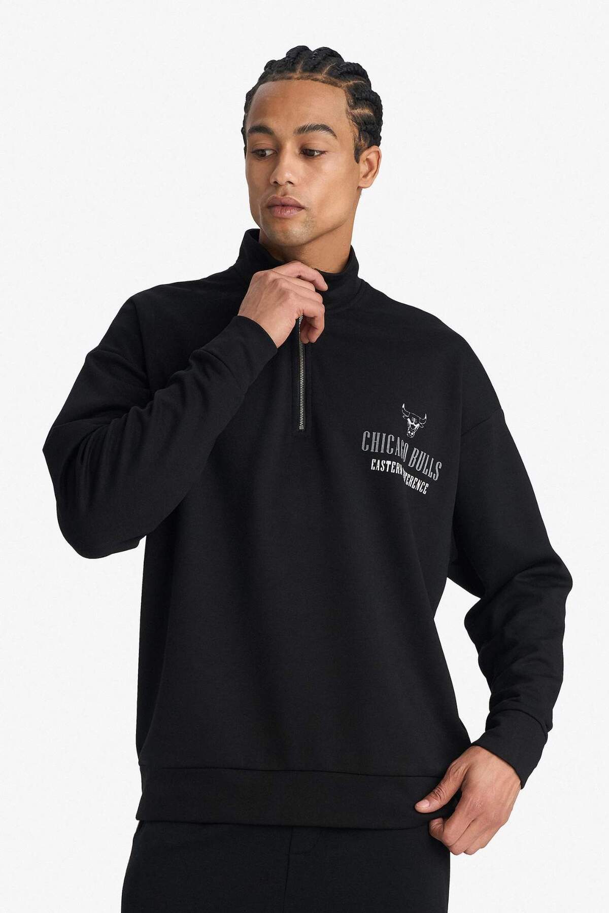 دفاکتو سویشرت زیپدار یقه ایستاده گشاد سایز بزرگ شیکاگو بولز مدل F9813AX25AU – NBA