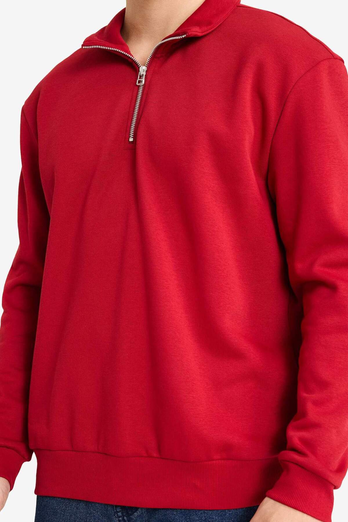دفاکتو سویشرت ساده نیم زیپ یقه ایستاده سایز معمولی X7405AZ25AU