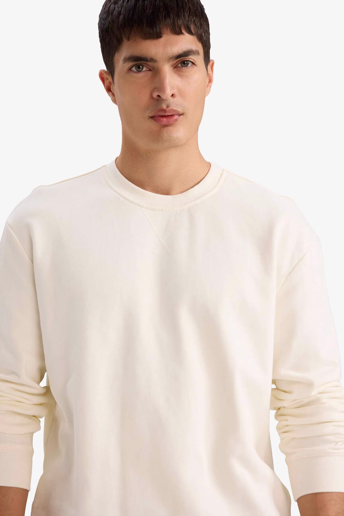 دفاکتو سویشرت مردانه ۱۰۰٪ پنبه‌ای سفید مایل به کرم E8339AX/ER100