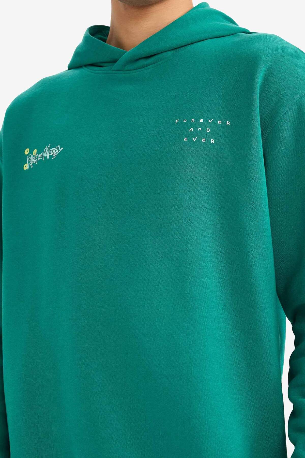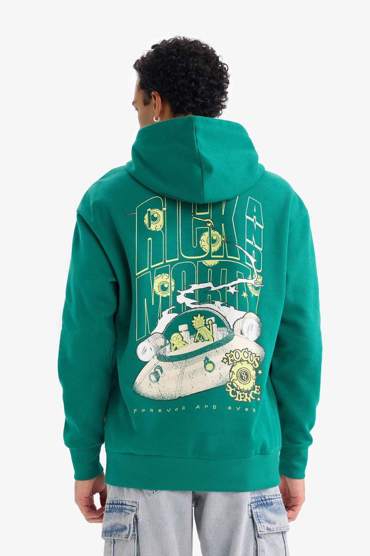 دفاکتو سویشرت طرح ریک و مورتی مدل Boxy Fit کلاه‌دار ضخیم طرح پارچه‌ای F8136AX26SP
