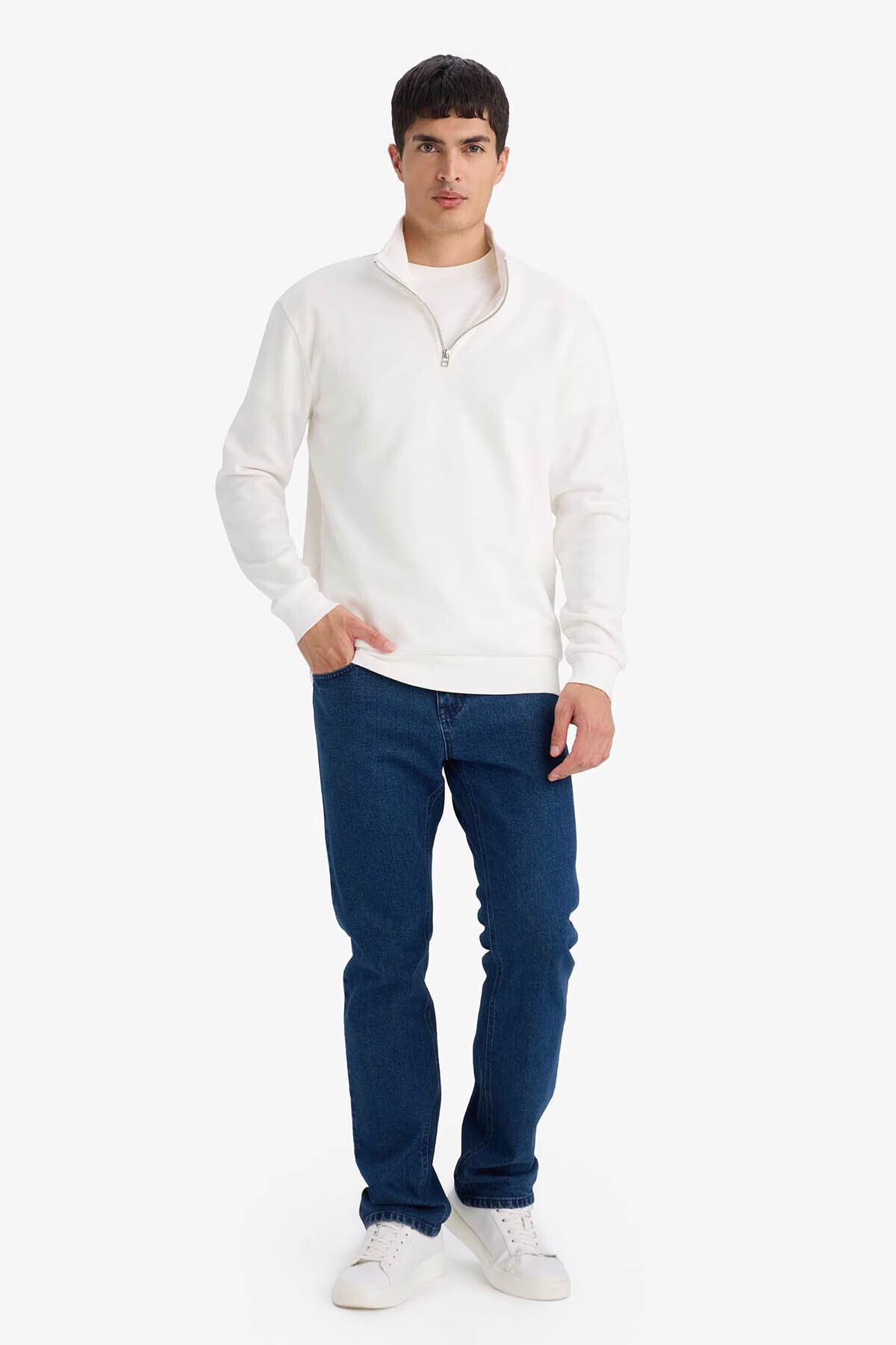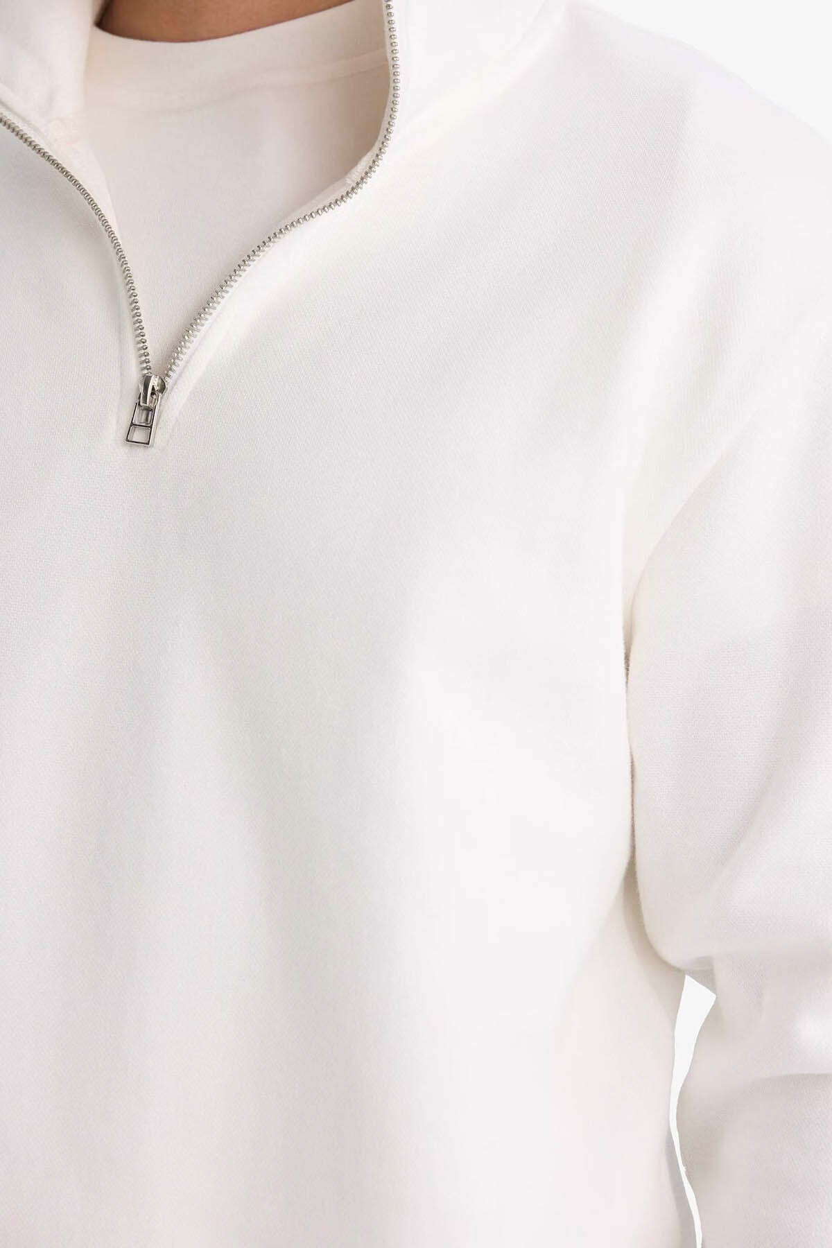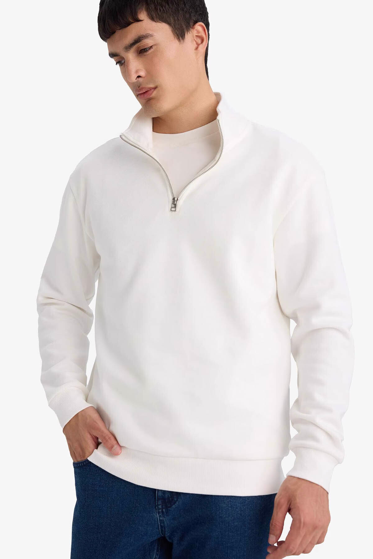 دفاکتو سویشرت مردانه سفید یقه ایستاده و نیم زیپ F9323AX/WT32