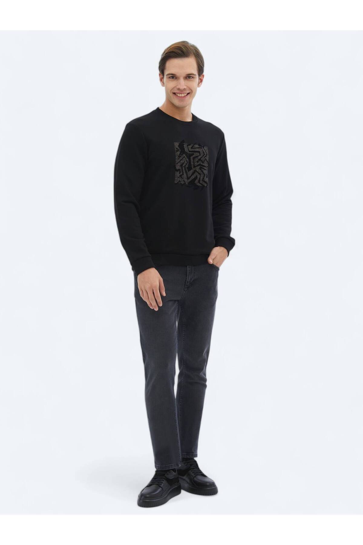 کیپ سویشرت یقه گرد مشکی طرح دار