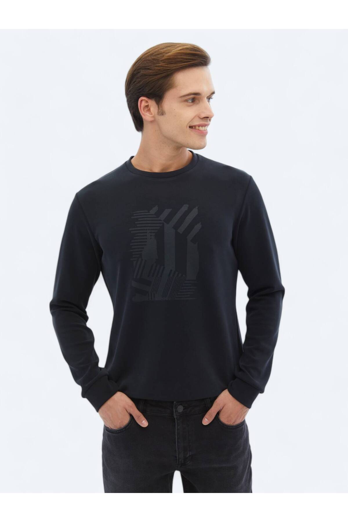 کیپ سویشرت یقه گرد مشکی طرح دار