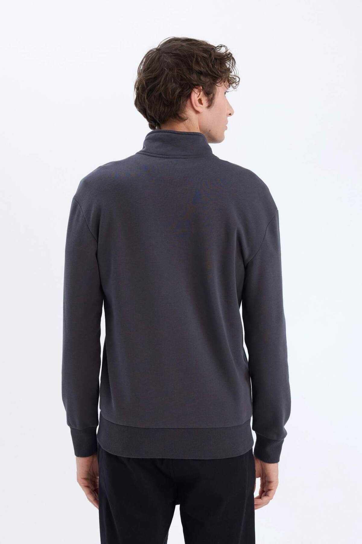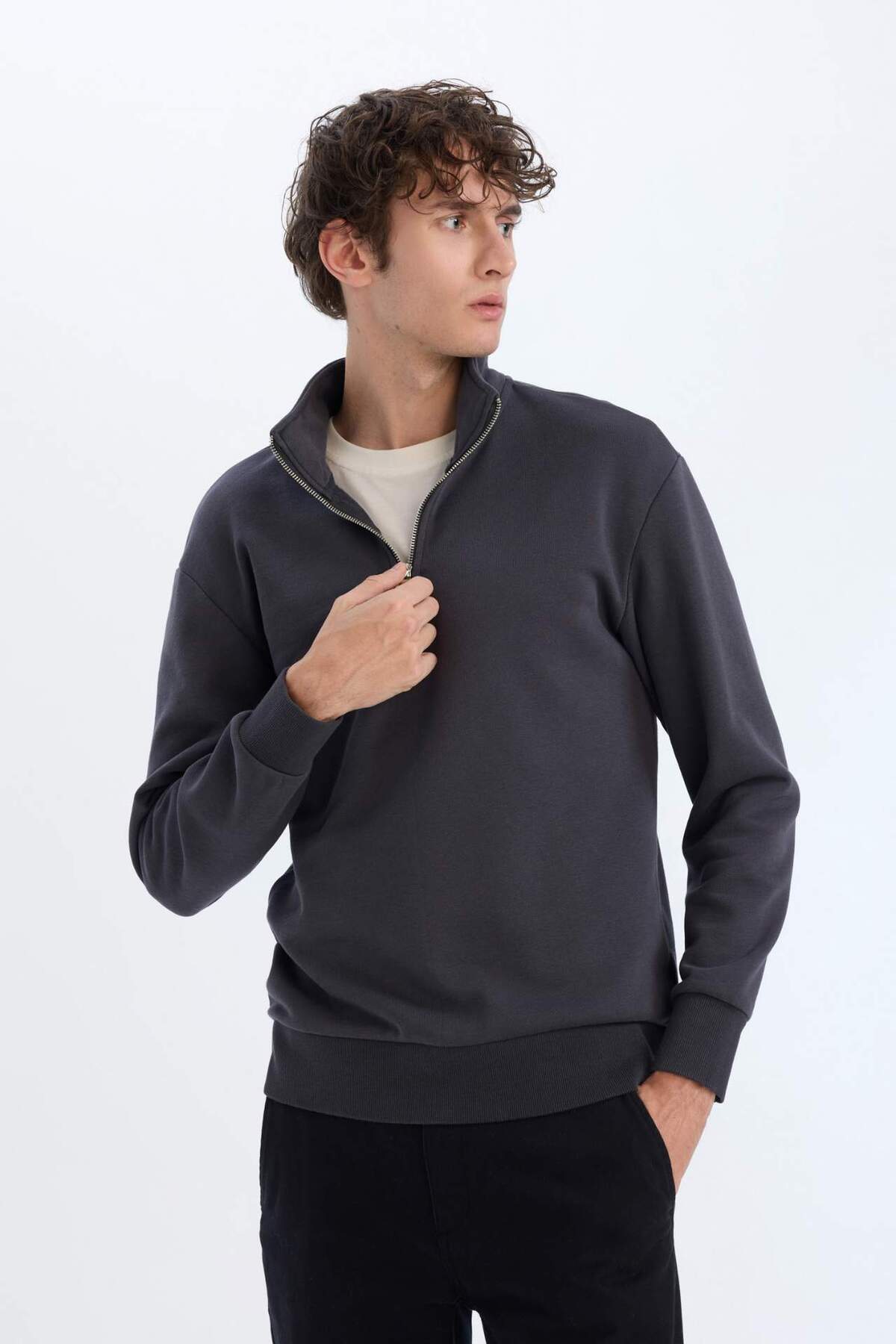 دفاکتو سویشرت ساده راحت، یقه ایستاده، زیپدار، برشدار، سایز معمولی، مدل X7405AZ25SP