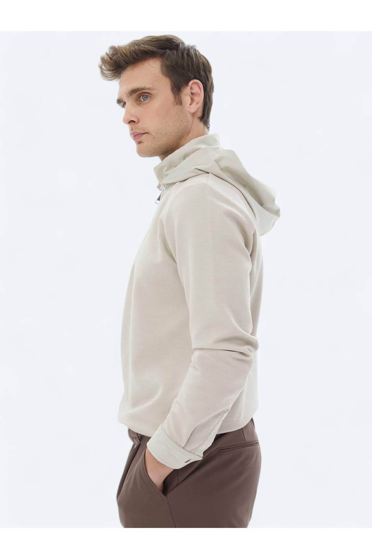 کیپ سویشرت کلاهدار بژ
