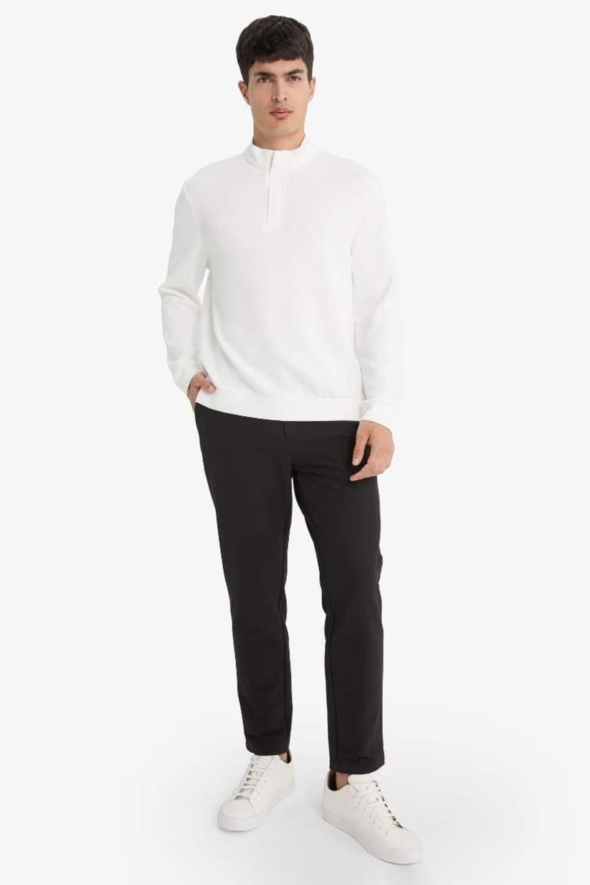 دفاکتو سویشرت مردانه سفید نیم زیپ یقه ایستاده معمولی F2821AX/WT34