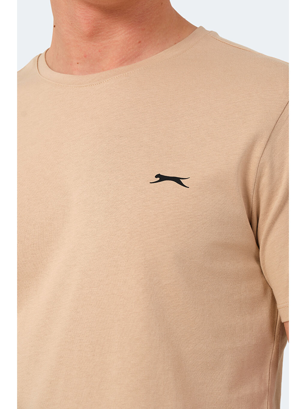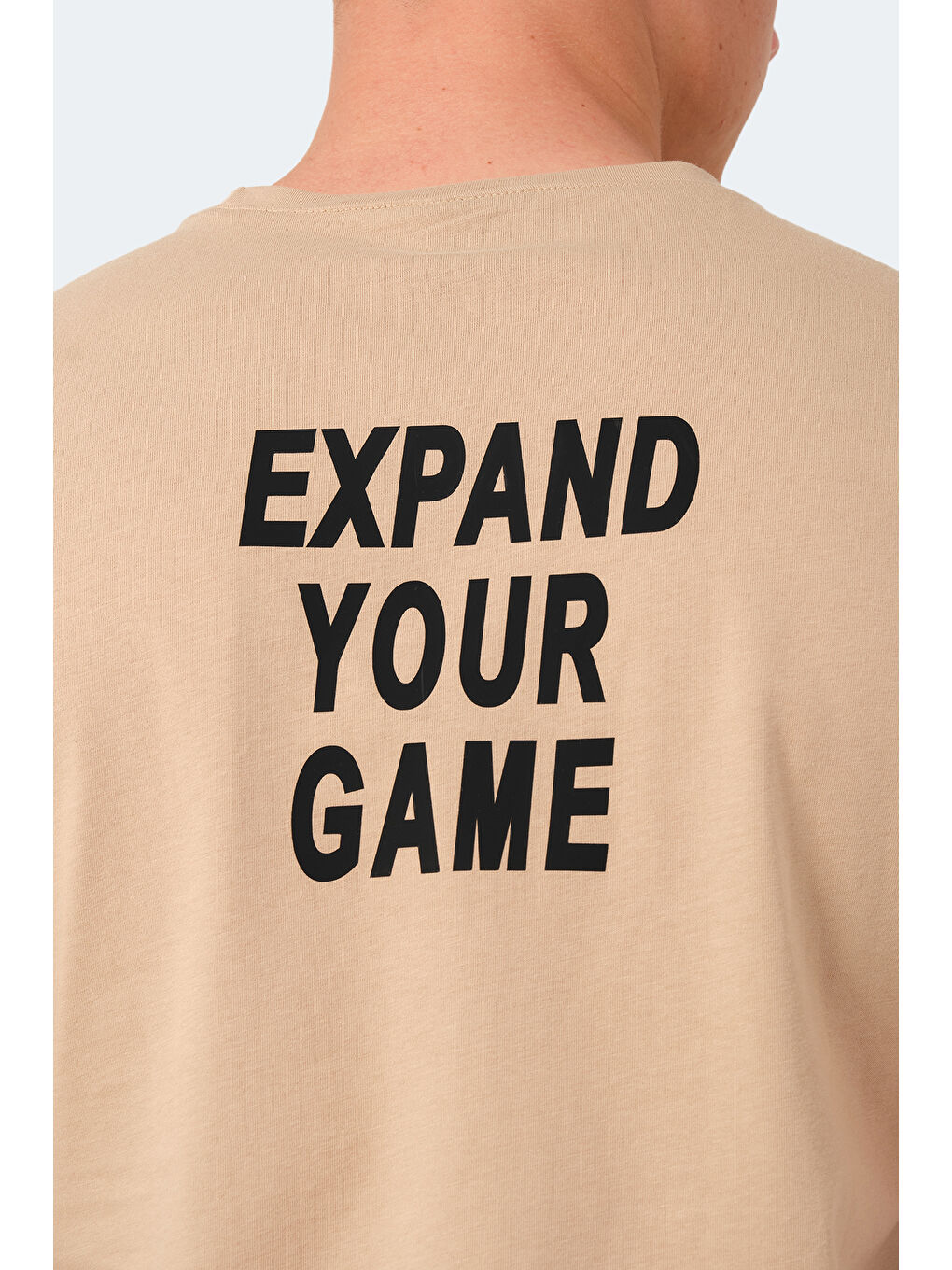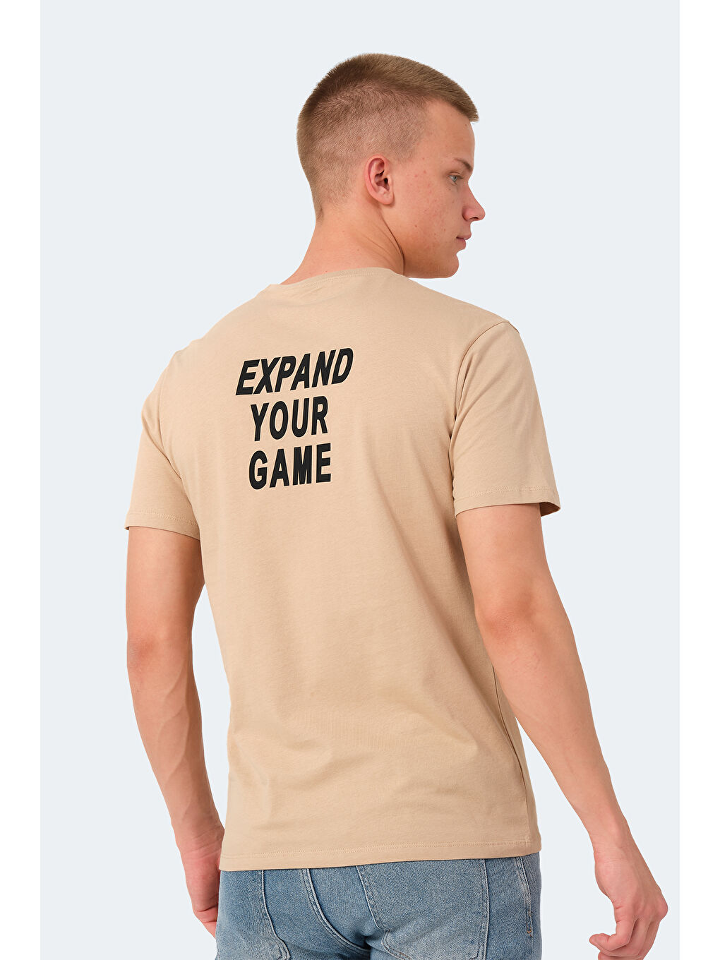 تیشرت آستین کوتاه مردانه یقه گرد بژ با نوشته پشت