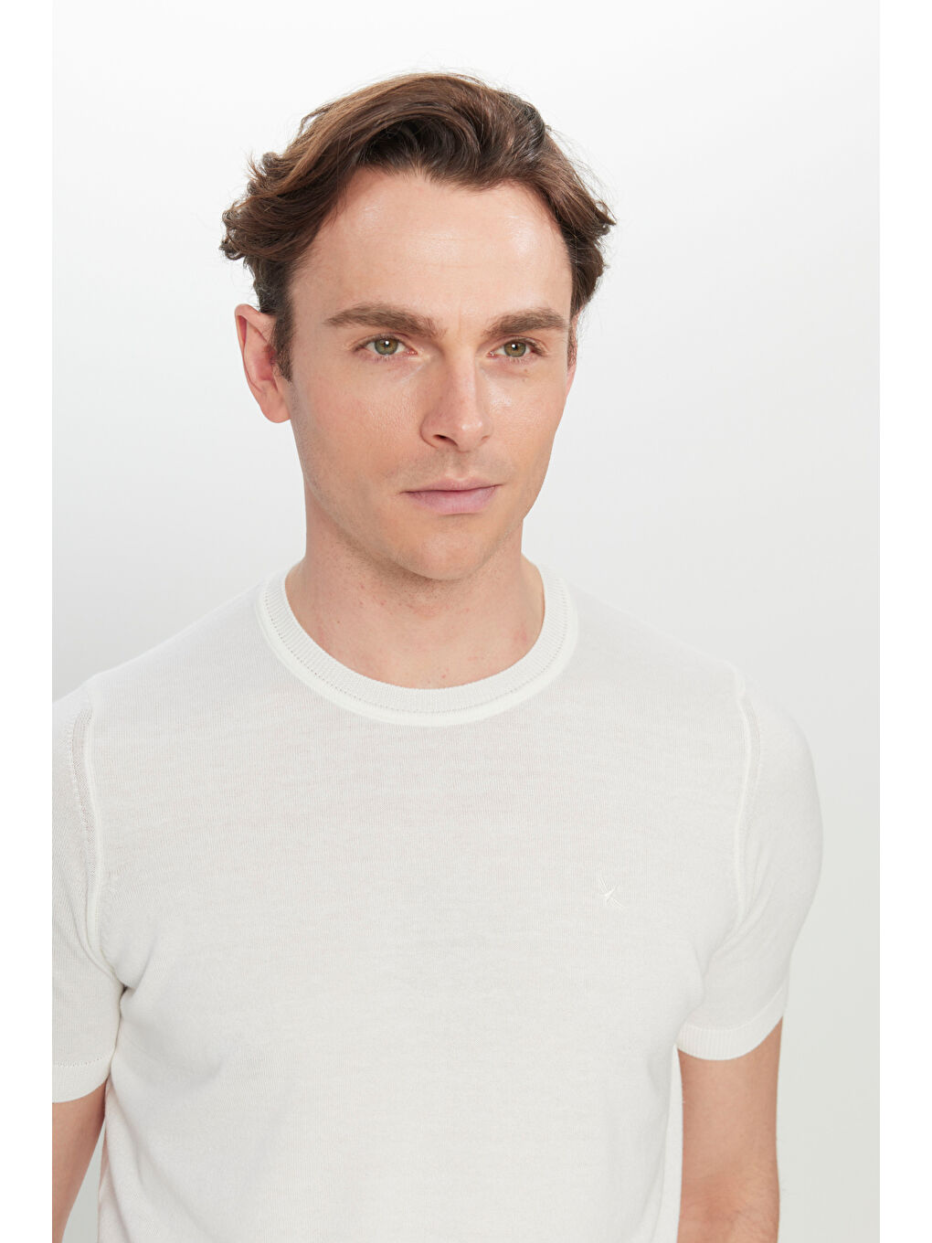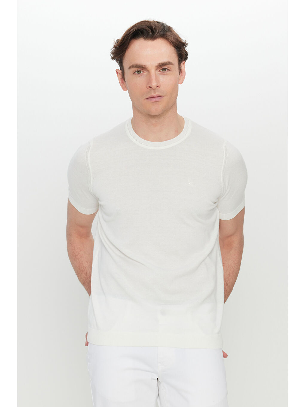 تی شرت مردانه یقه گرد طرح Ecru Cotton Standard Fit Regular Cut