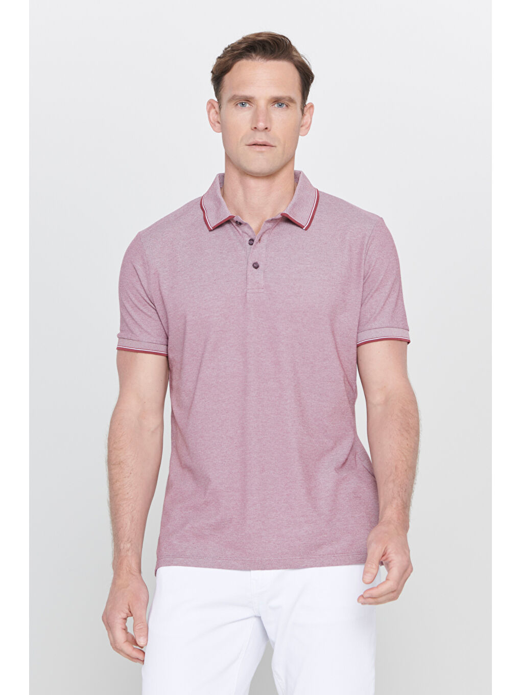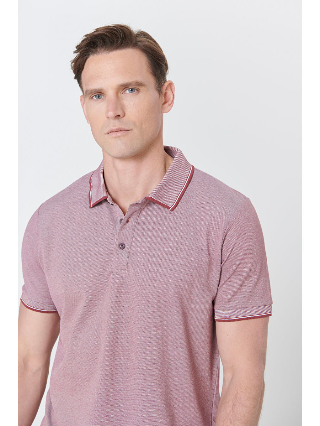 تیشرت یقهدار مردانه قرمز Claret مدل Red-LIGHT BLACK-LIGHT NAVY اسلیم فیت، باریک و 3 تکه، یقه گرد، بدون قابلیت رول شدن