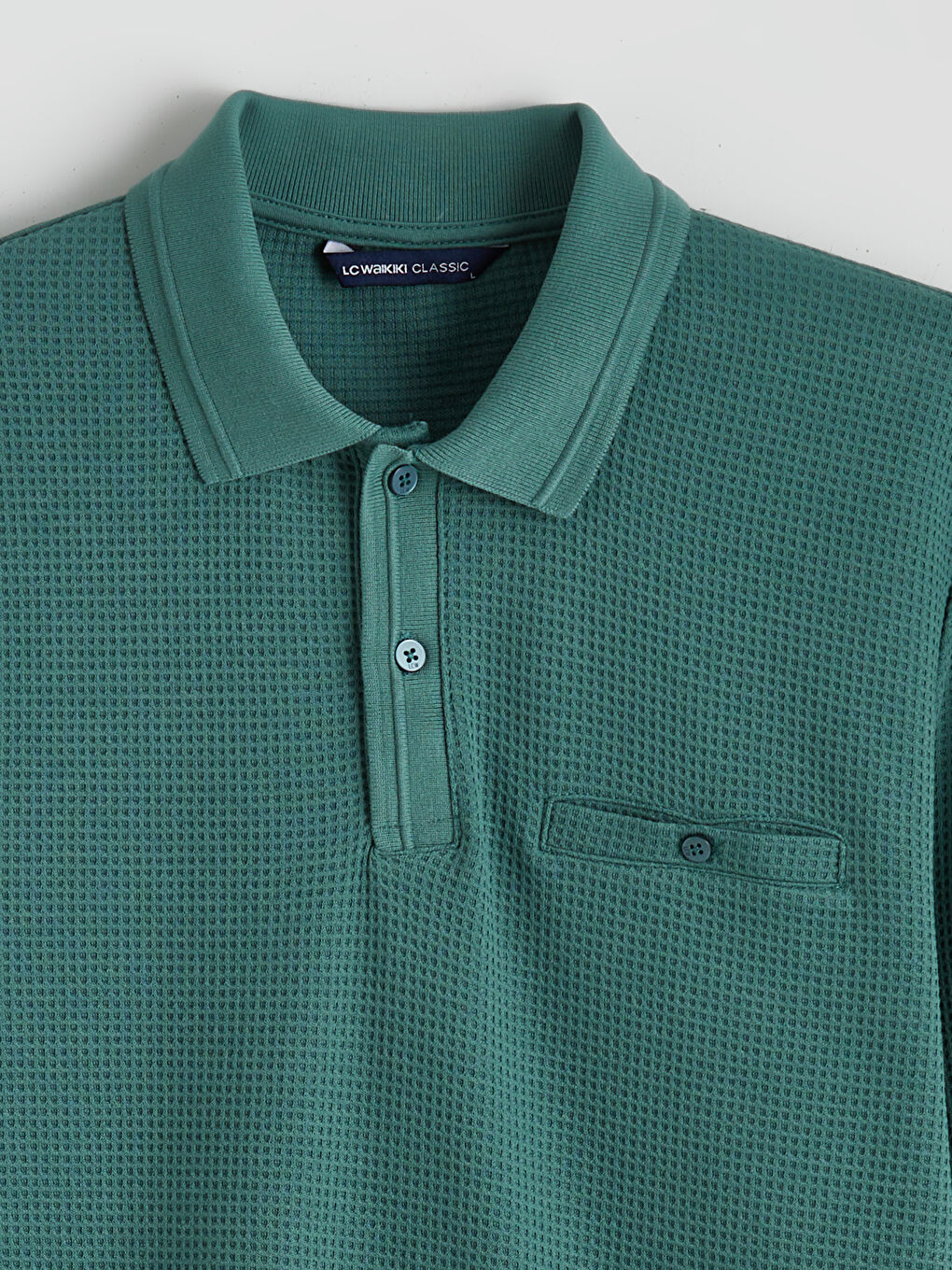 تی‌شرت بافت‌دار مردانه یقه پولو سبز