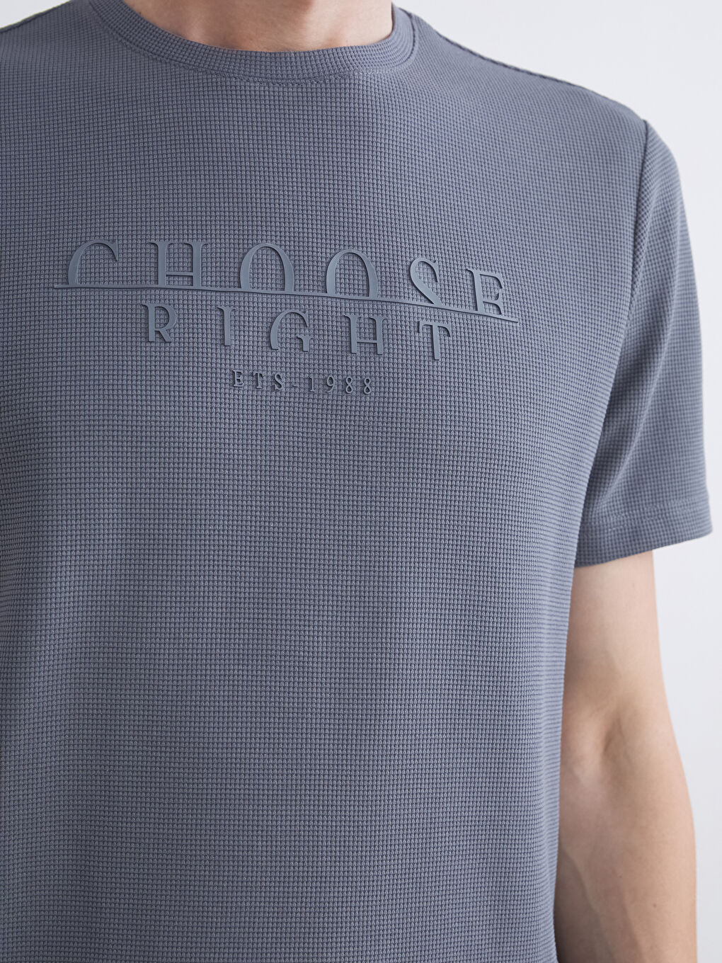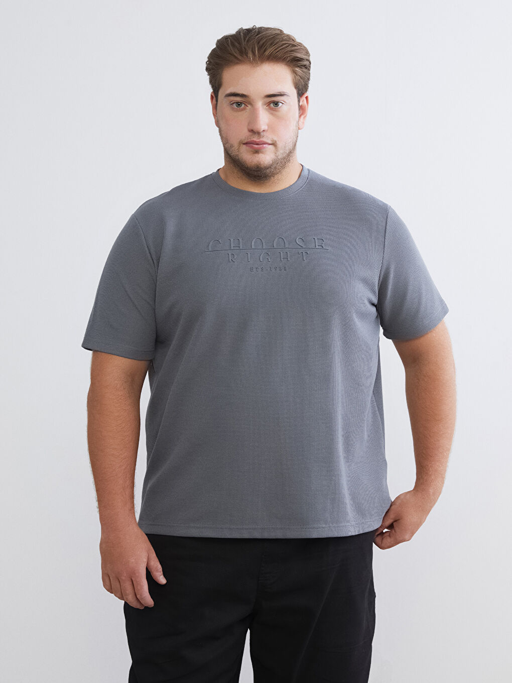تیشرت مردانه طرحدار یقه گرد خاکستری