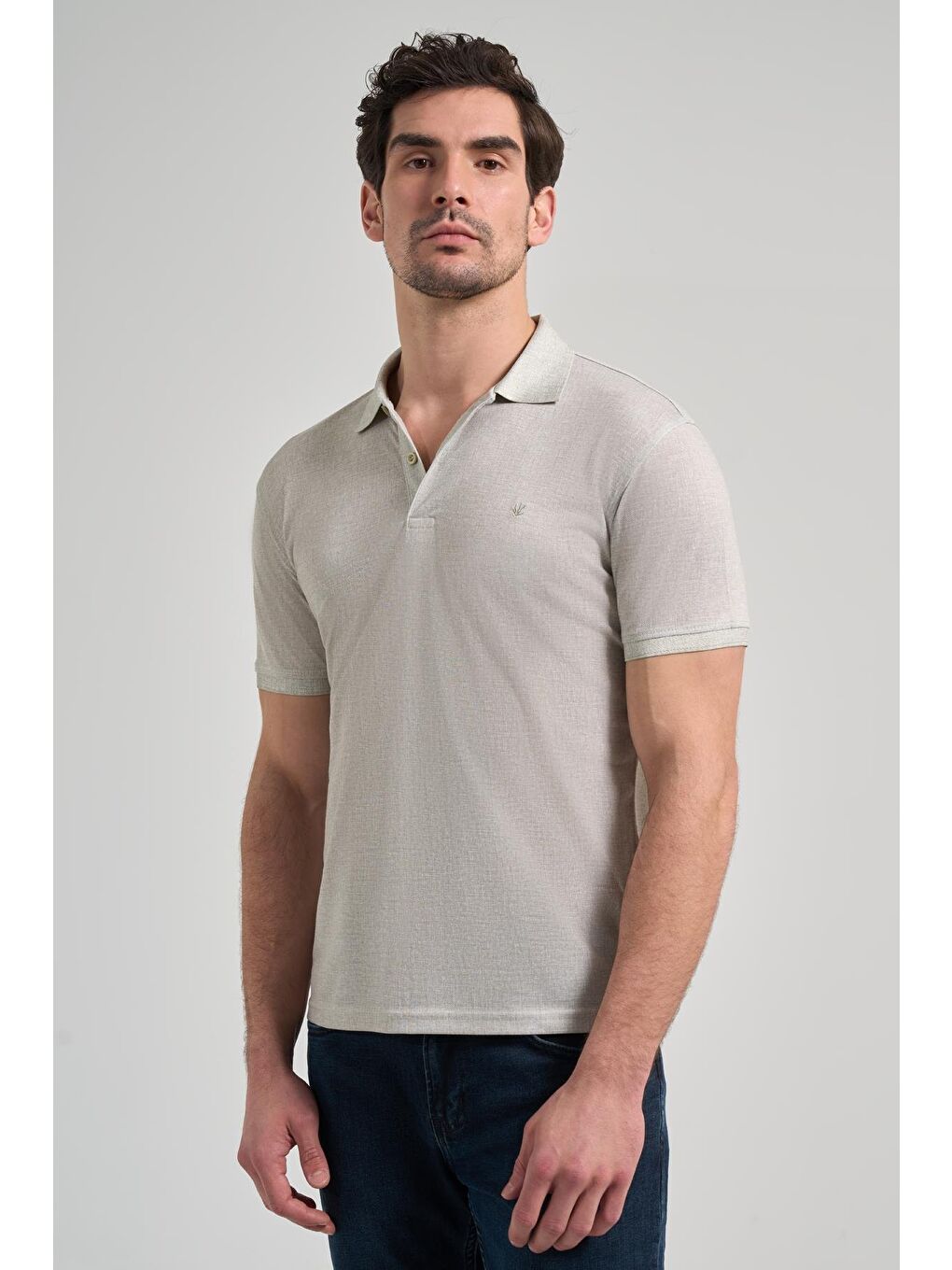 تیشرت آستین کوتاه سبز روشن یقه پولو طرحدار، بدون جیب، انعطافپذیر، مناسب برای استفاده روزمره و اسلیم فیت، کد ۱۰۱۱۲۵۰۱۵۱