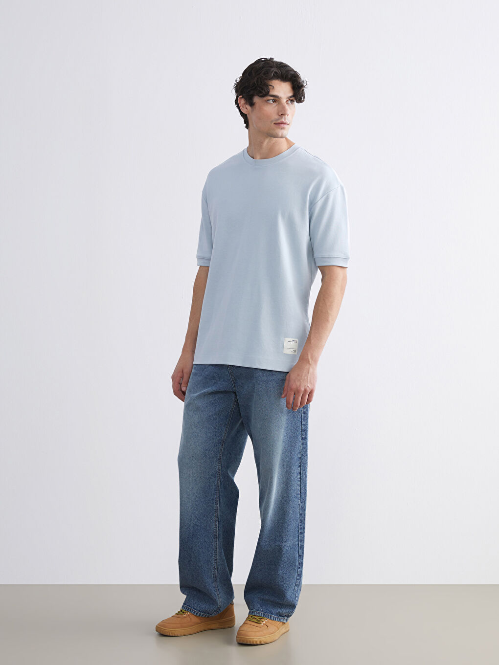 تیشرت مردانه یقه گرد، آستین کوتاه، گشاد و از پارچه اینترلاک با درصد بالای پنبه ساخته شده است.