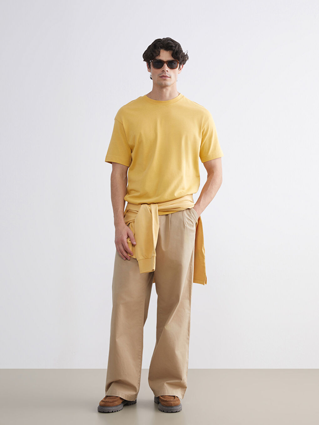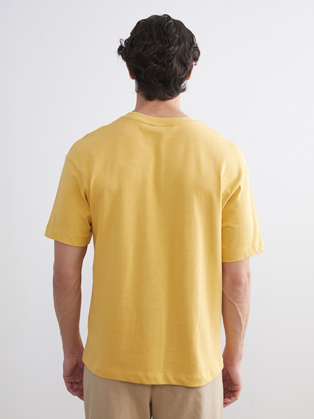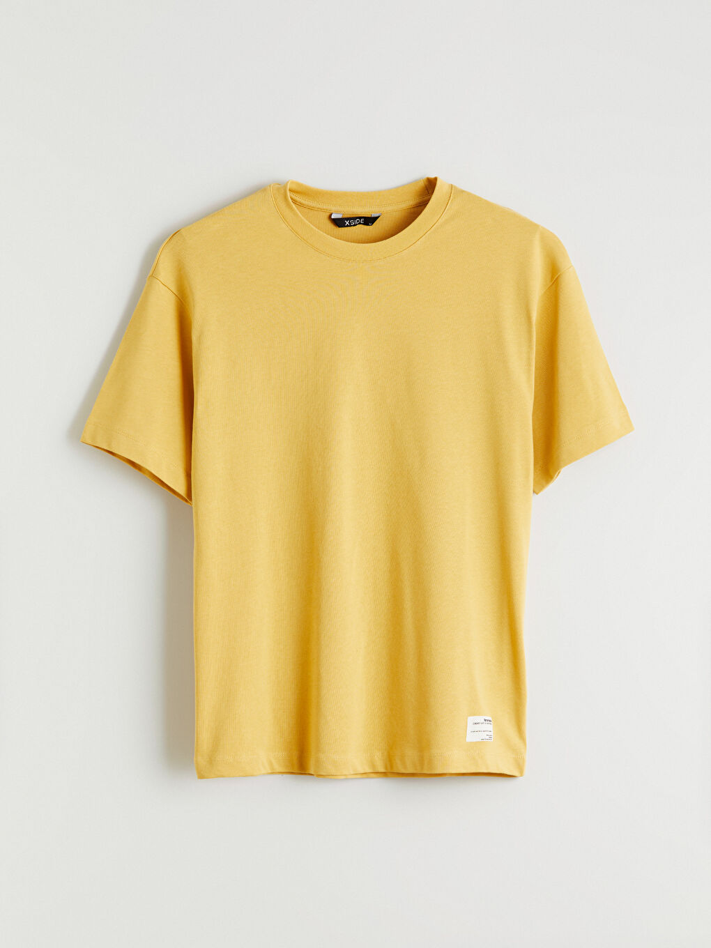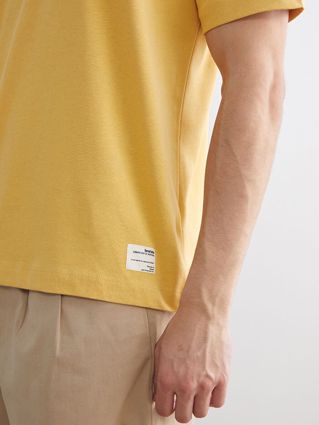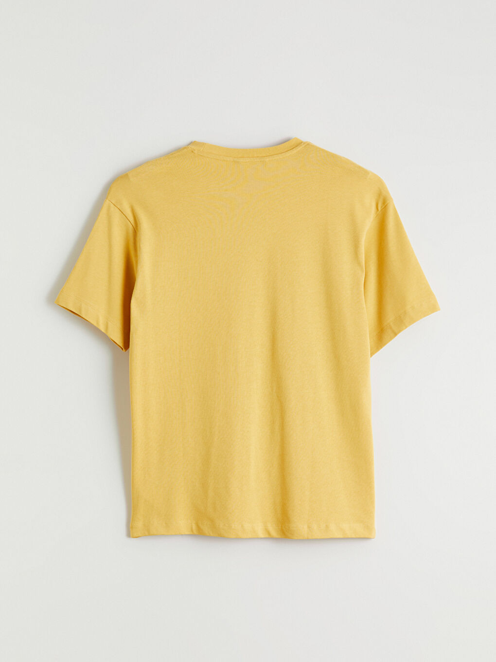 تی شرت مردانه یقه گرد زرد طرح دار نخی
