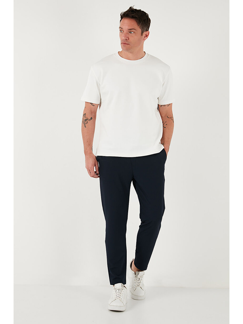مدل: تیشرت سبک لباس: روزمره / غیررسمی جنس: ۸۵٪ پنبه ۱۵٪ پلیاستر اطلاعات یقه: یقه گرد اطلاعات آستین: آستین کوتاه اطلاعات الگو: سایز معمولی ابعاد مدل: قد: ۱.۸۷ سانتیمتر / سینه: ۹۰ سانتیمتر / کمر: ۷۳ سانتیمتر / سایز: L محل تولید: ترکیه