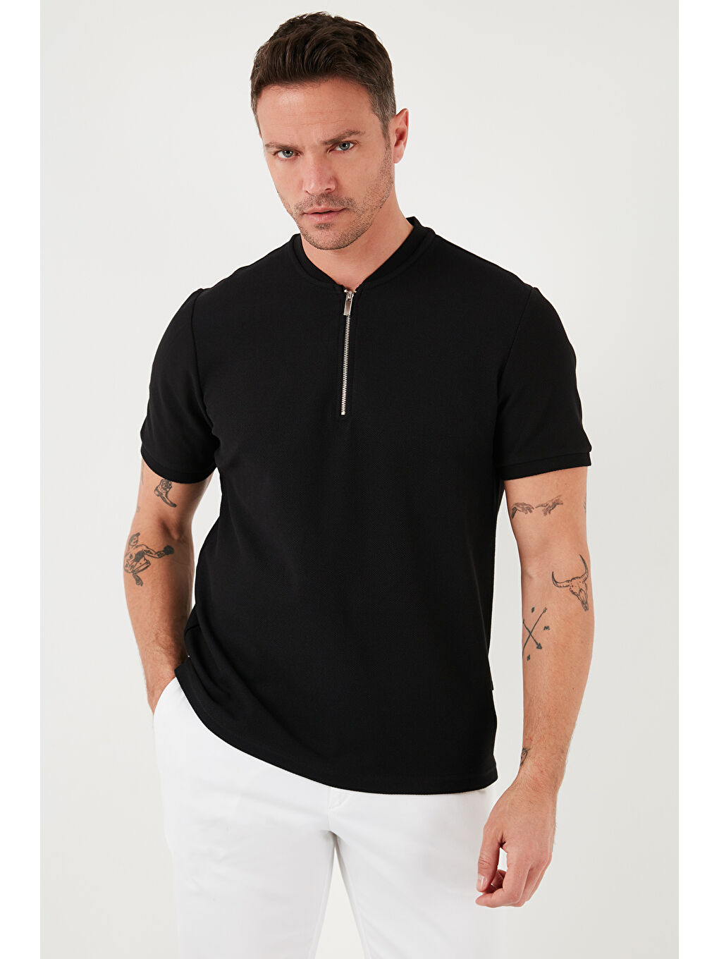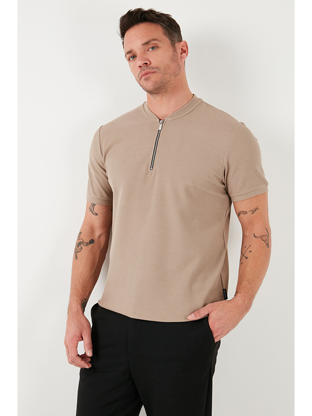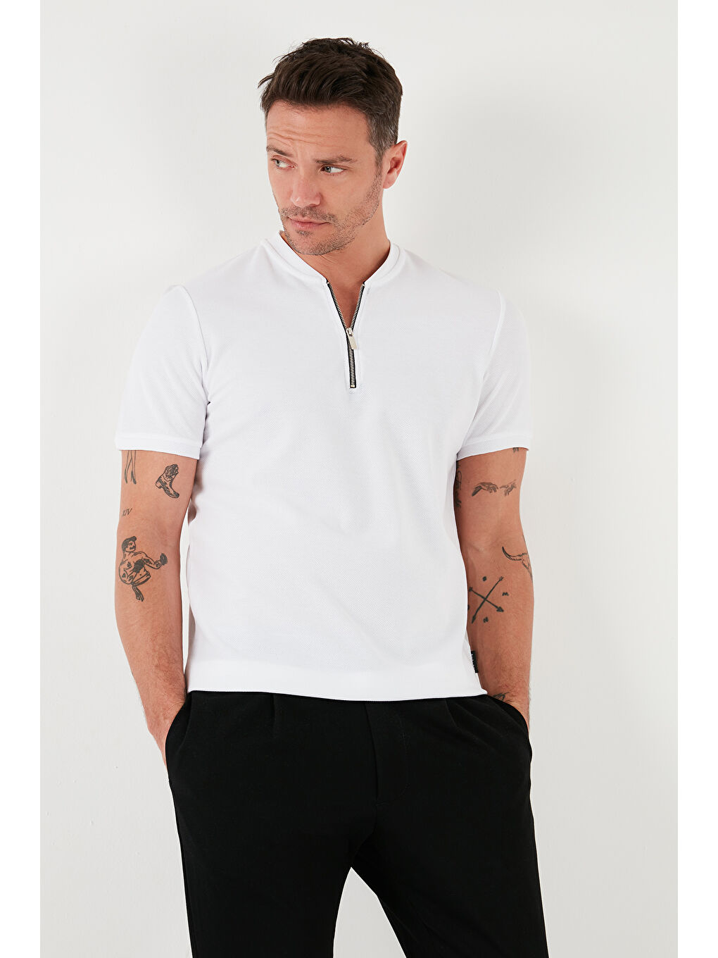 تیشرت سفید نخی معمولی یقه کالج نیم زیپ کد ۵۹۰۲۶۵۳S۳