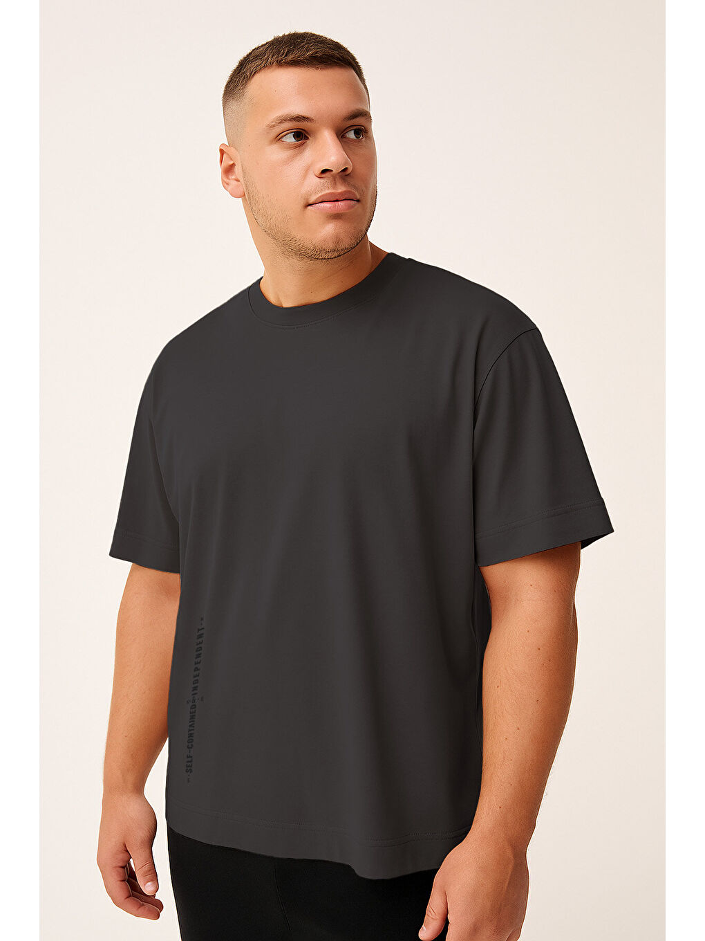 تیشرت مردانه سایز بزرگ طرحدار یقه گرد با چاپ آنتراسیت – 88472