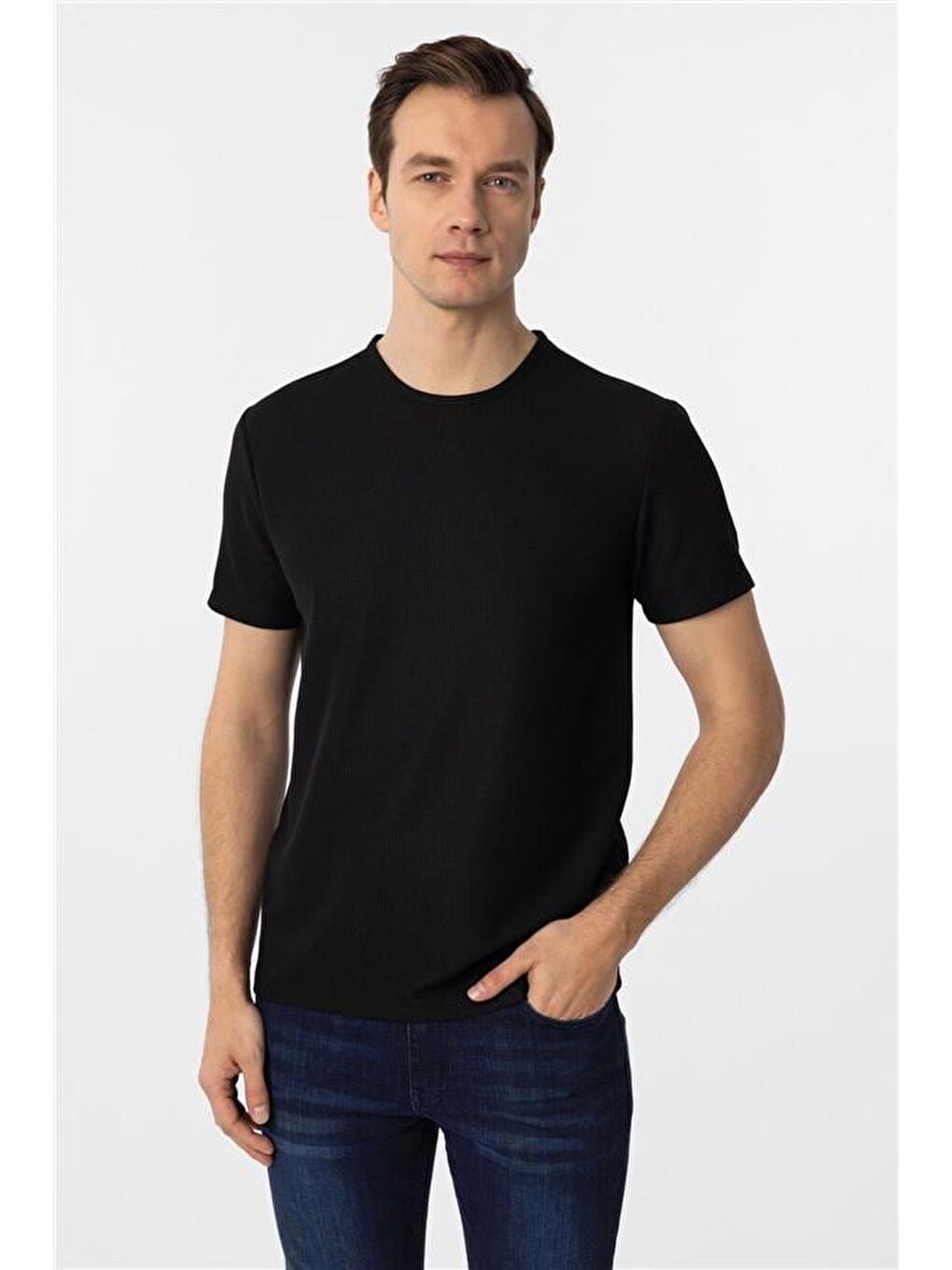 تیشرت یقه گرد اسلیم مشکی مشکی دابی