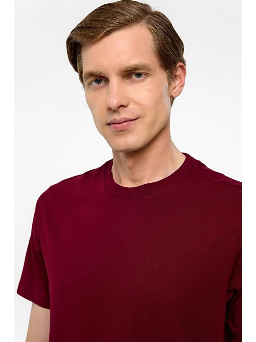 تیشرت یقه گرد ساده معمولی زرشکی تیره