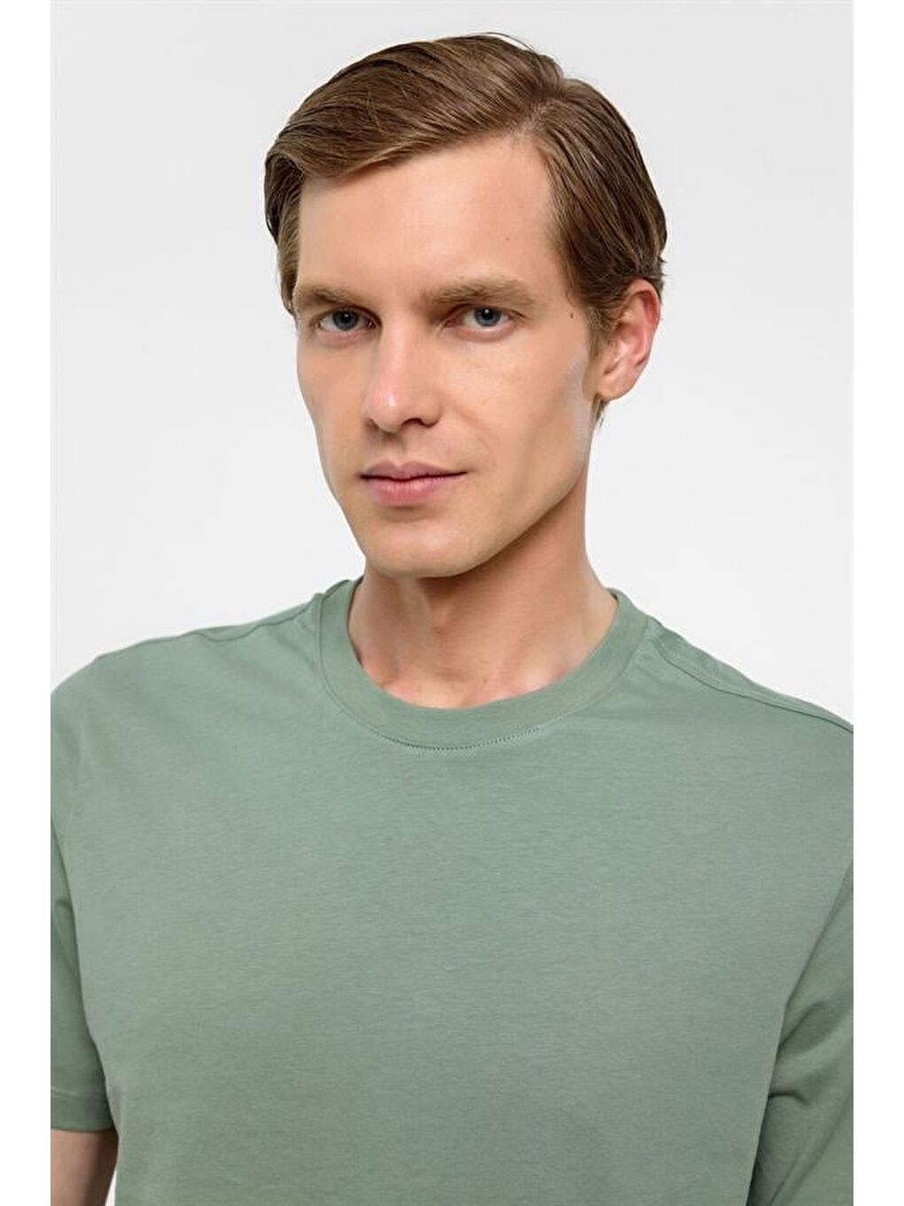 تیشرت یقه گرد ساده معمولی سبز فیروزهای
