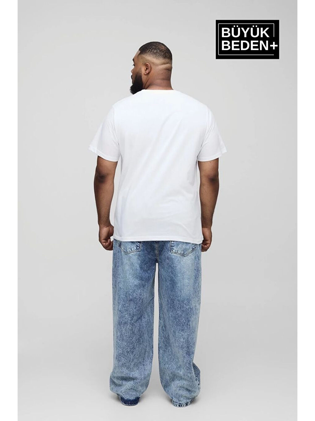 تی شرت مردانه سفید سایز بزرگ طرح دار یقه گرد SPR25BTS905