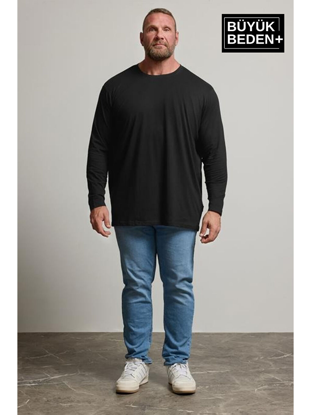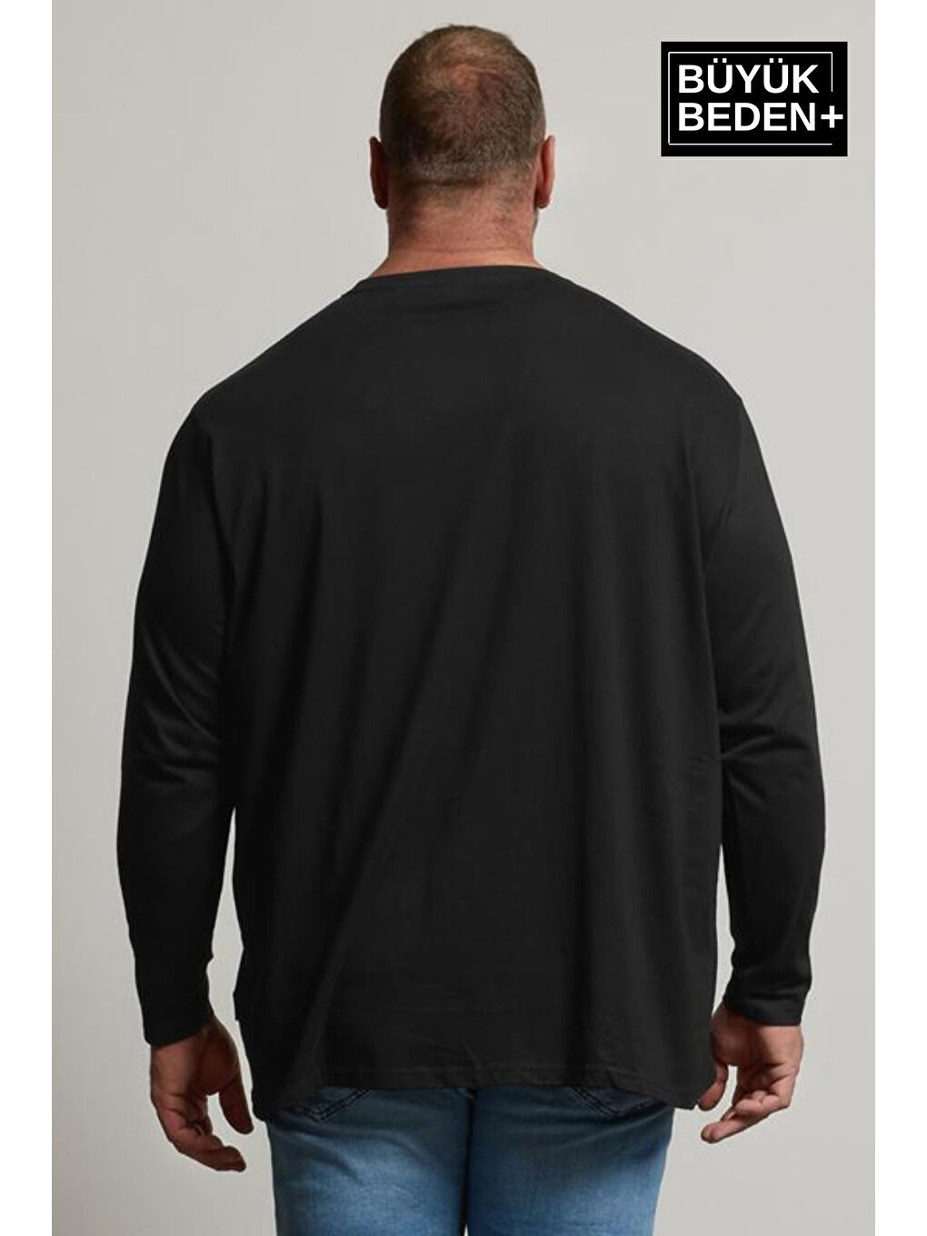 تیشرت آستین بلند مردانه سایز بزرگ مشکی دو نخ یقه گرد