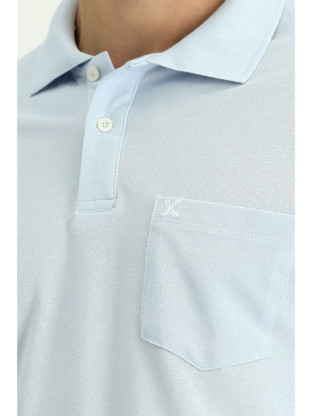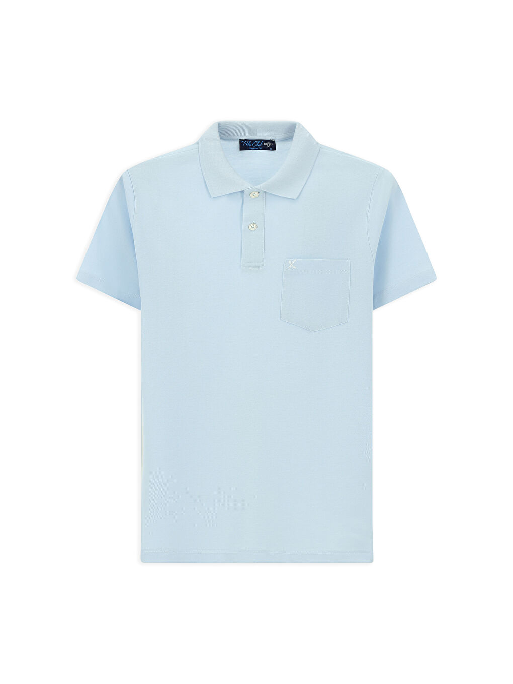 تیشرت نخی گلدوزی شده یقه پولو آبی معمولی