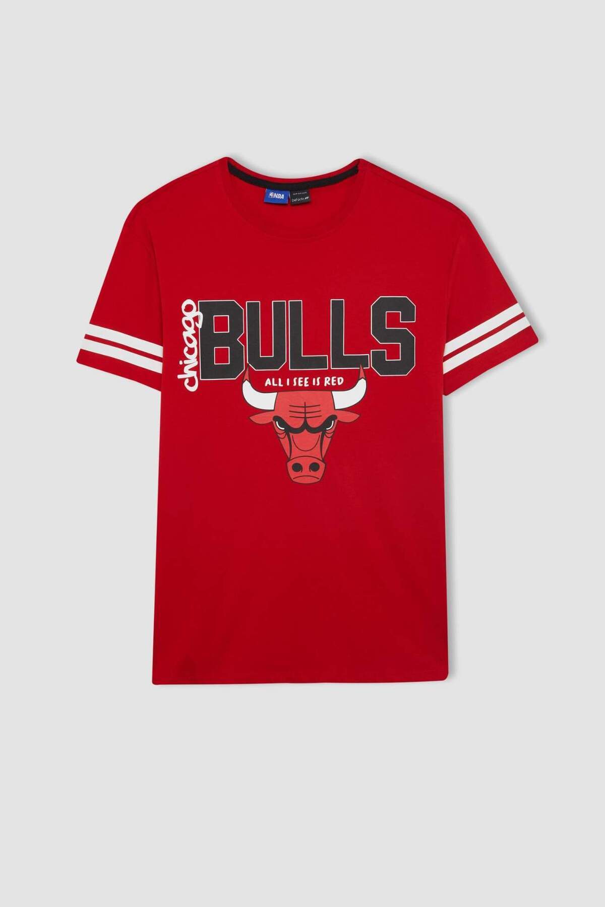 دفاکتو تیشرت آستین کوتاه آستین کوتاه یقه گرد استاندارد فیت، طرح NBA شیکاگو بولز، کد A1995AX23SM از برند DeFactoFit