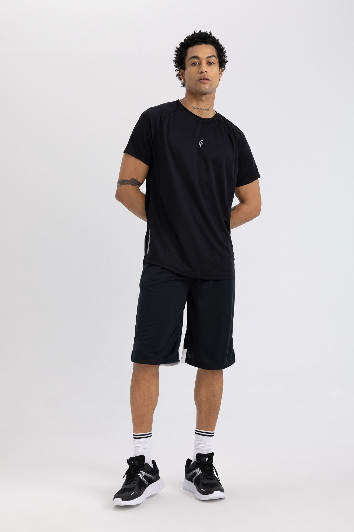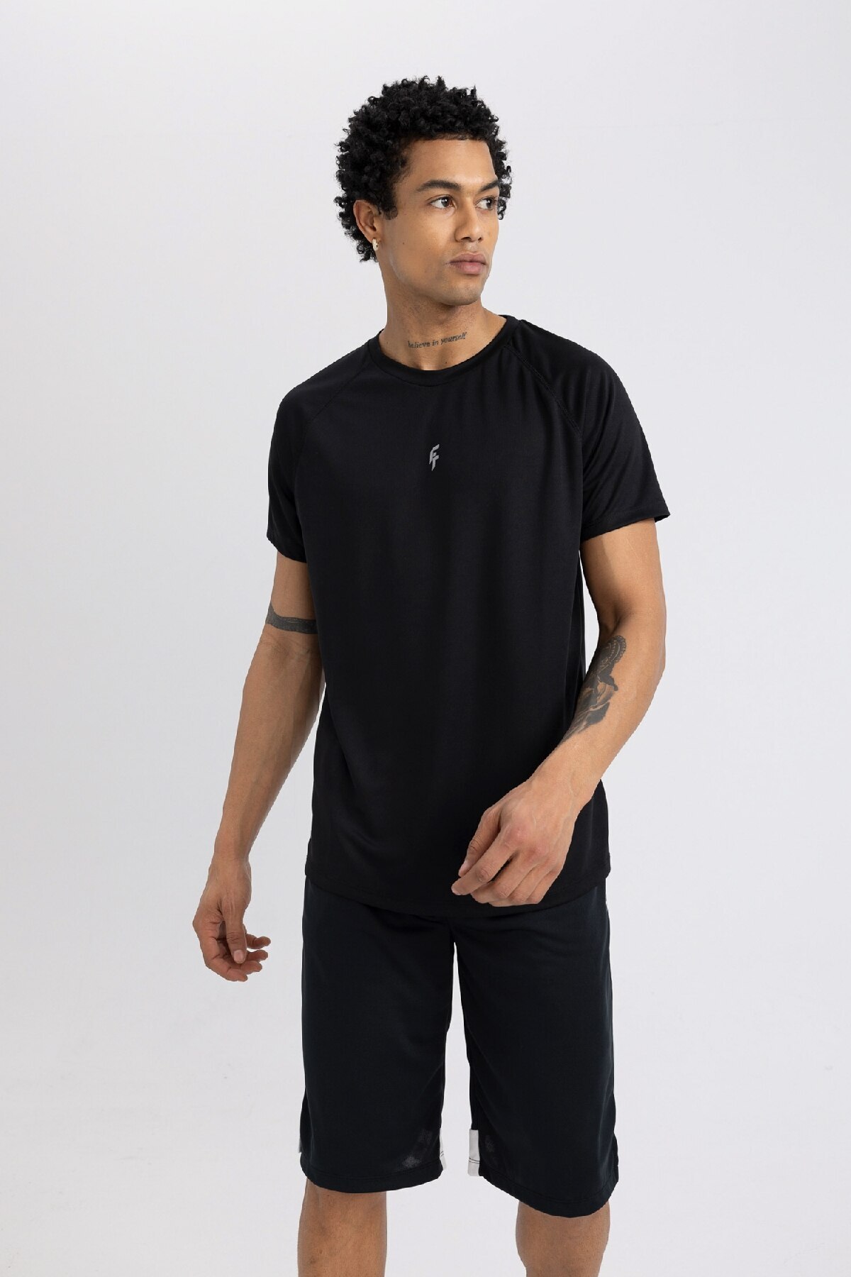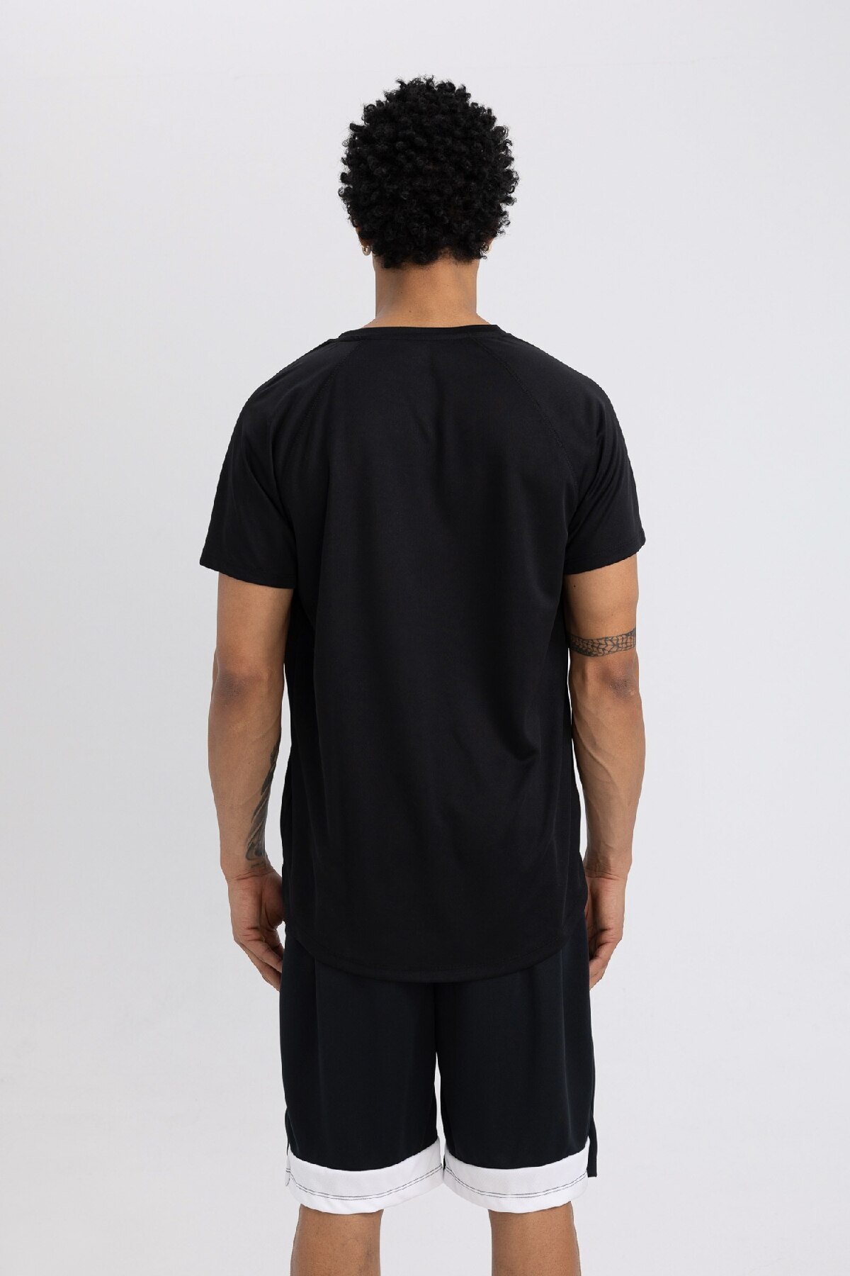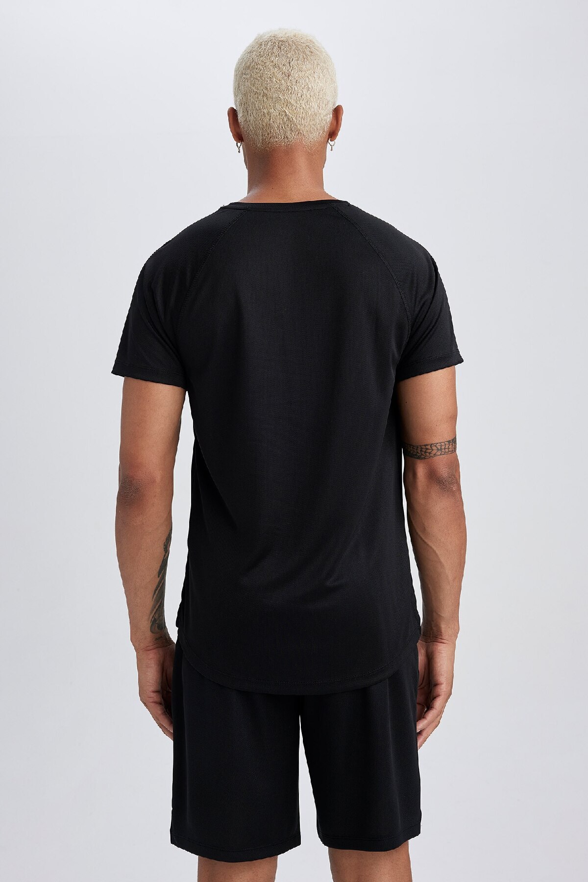 دفاکتو تیشرت آستین کوتاه ورزشی طرحدار یقه گرد باریک اسلیم فیت V2887az23au