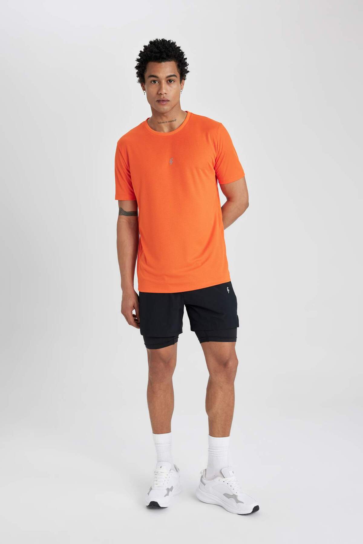 دفاکتو تی‌شرت آستین کوتاه ورزشی طرح‌دار DeFactoFit مدل Slim Fit Narrow Crew Yeck X6142AZ24SP
