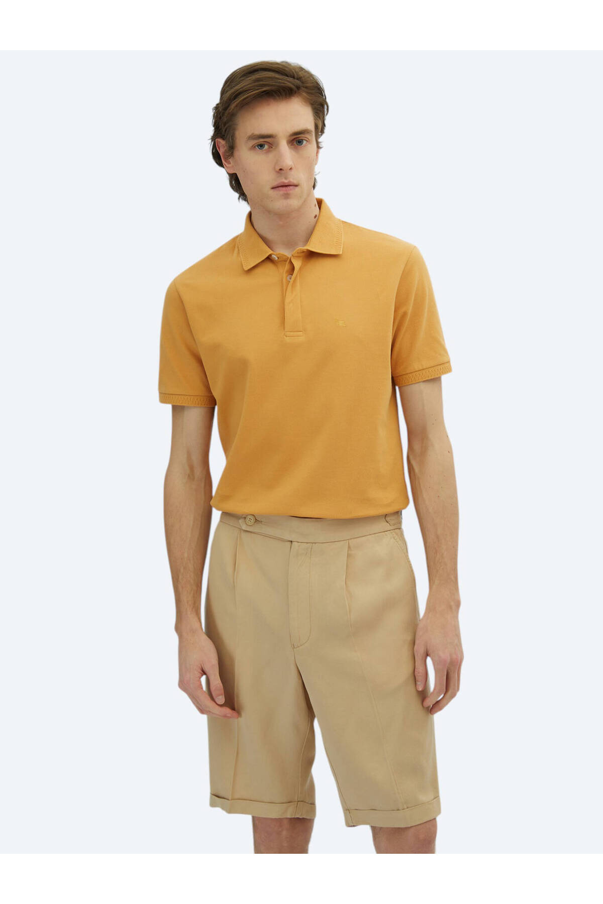 کیپ تی‌شرت یقه پولو ساده زعفرانی ۱۰۰٪ پنبه