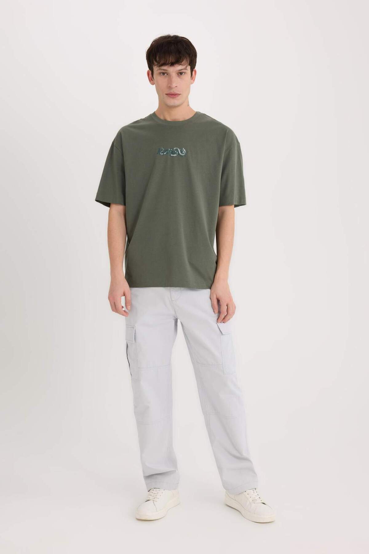 دفاکتو تیشرت آستین کوتاه طرح دار یقه گرد گشاد ۱۰۰٪ پنبه D9346AX25SP