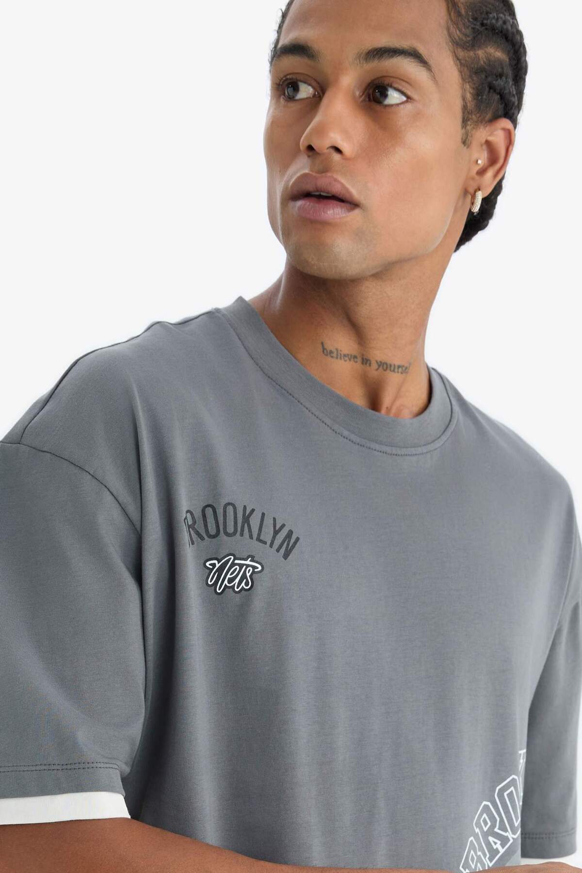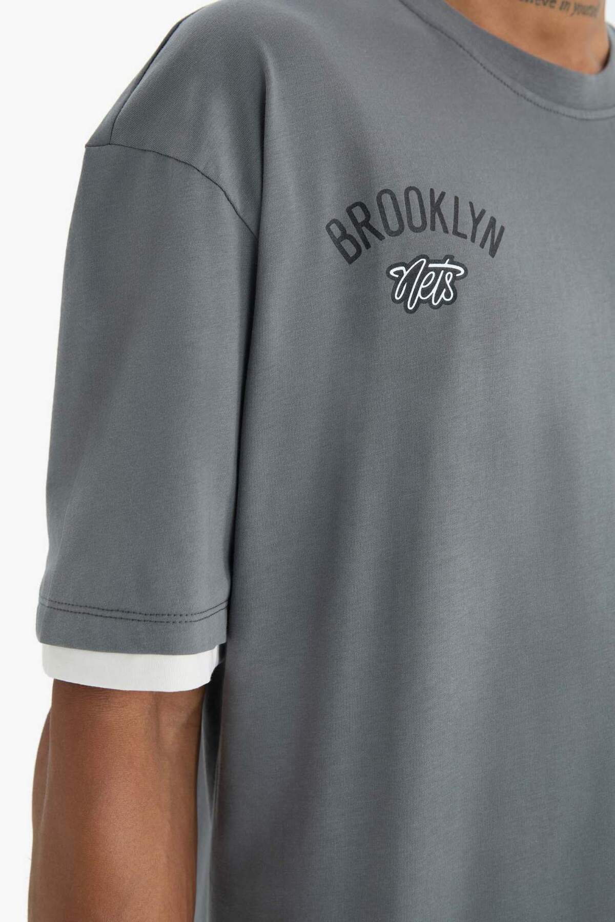 دفاکتو تی شرت آستین کوتاه مردانه دیفکتو فیت مدل NBA Brooklyn Nets D8610AX25SP