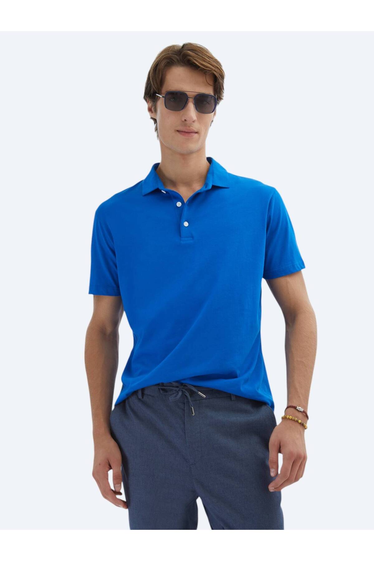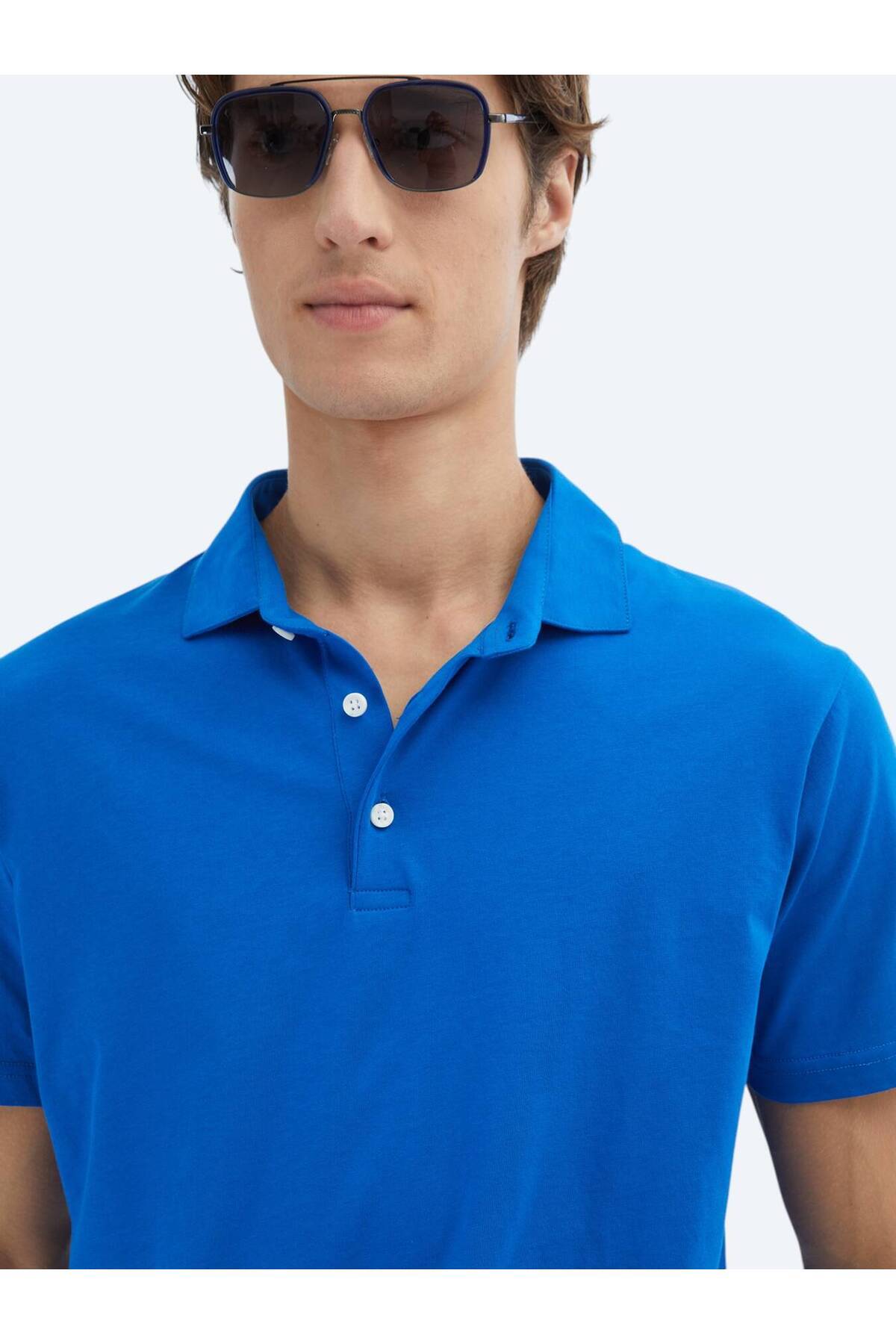 کیپ تی‌شرت یقه پولو ساده ساکس، ۱۰۰٪ پنبه