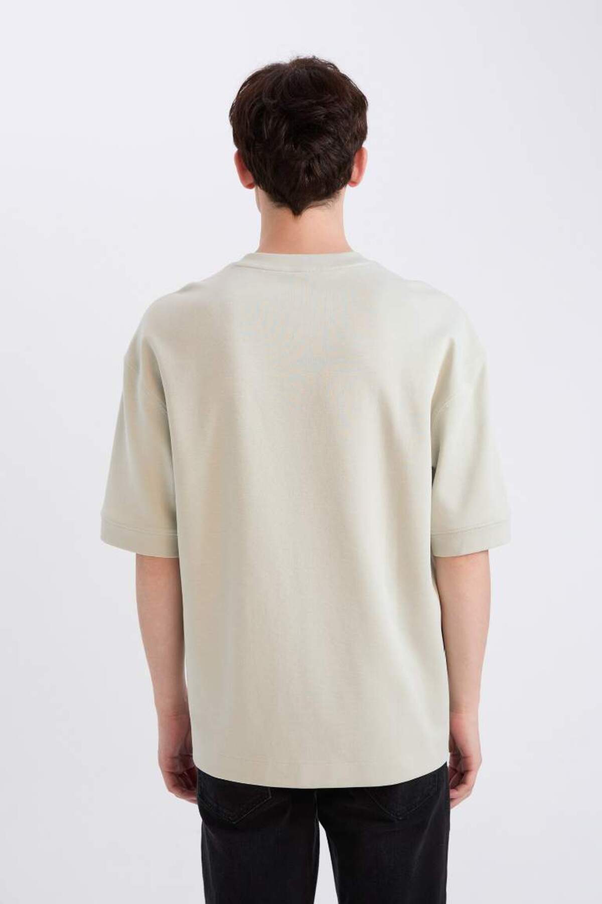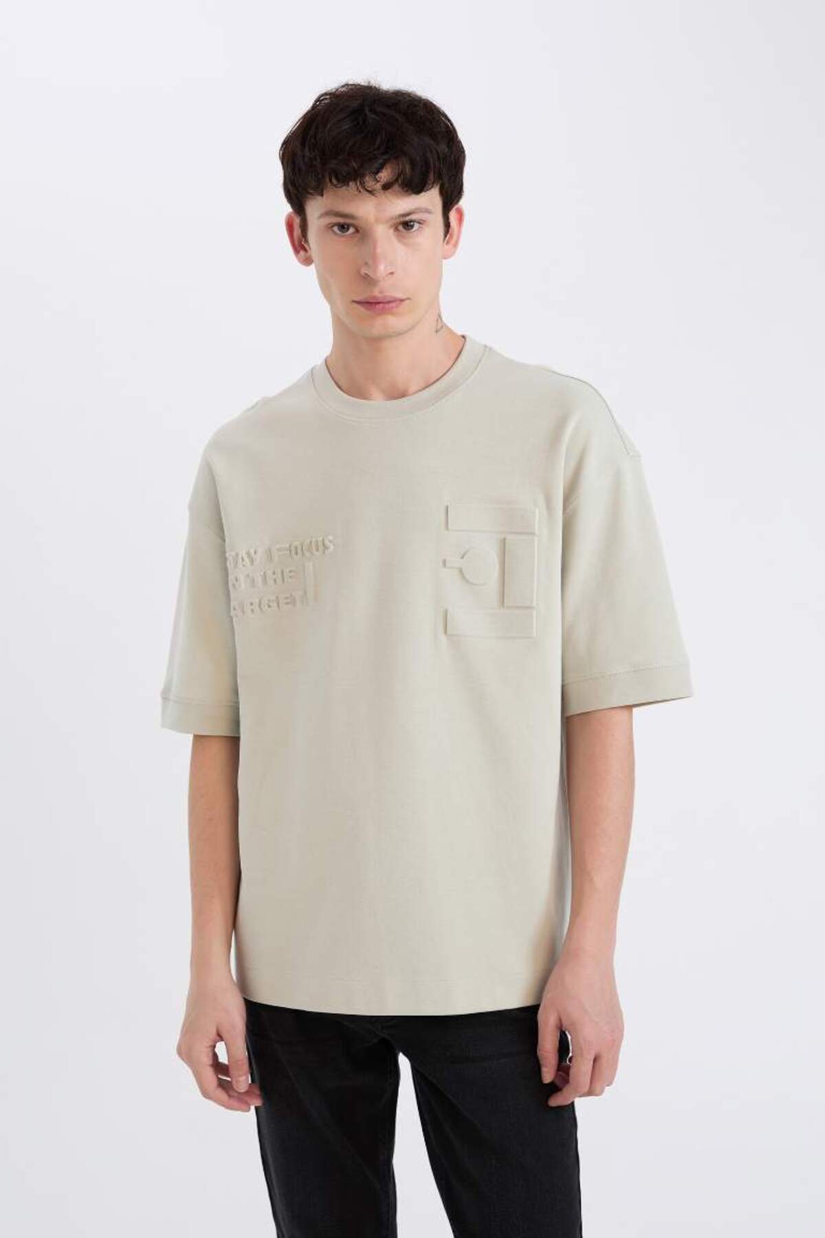 دفاکتو تی شرت مردانه یقه گرد گشاد، طرح خاکی روشن، D5557AX/KH494