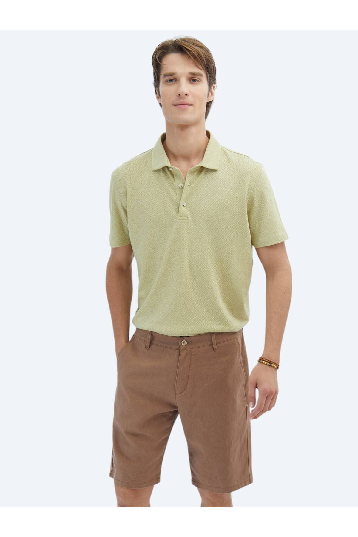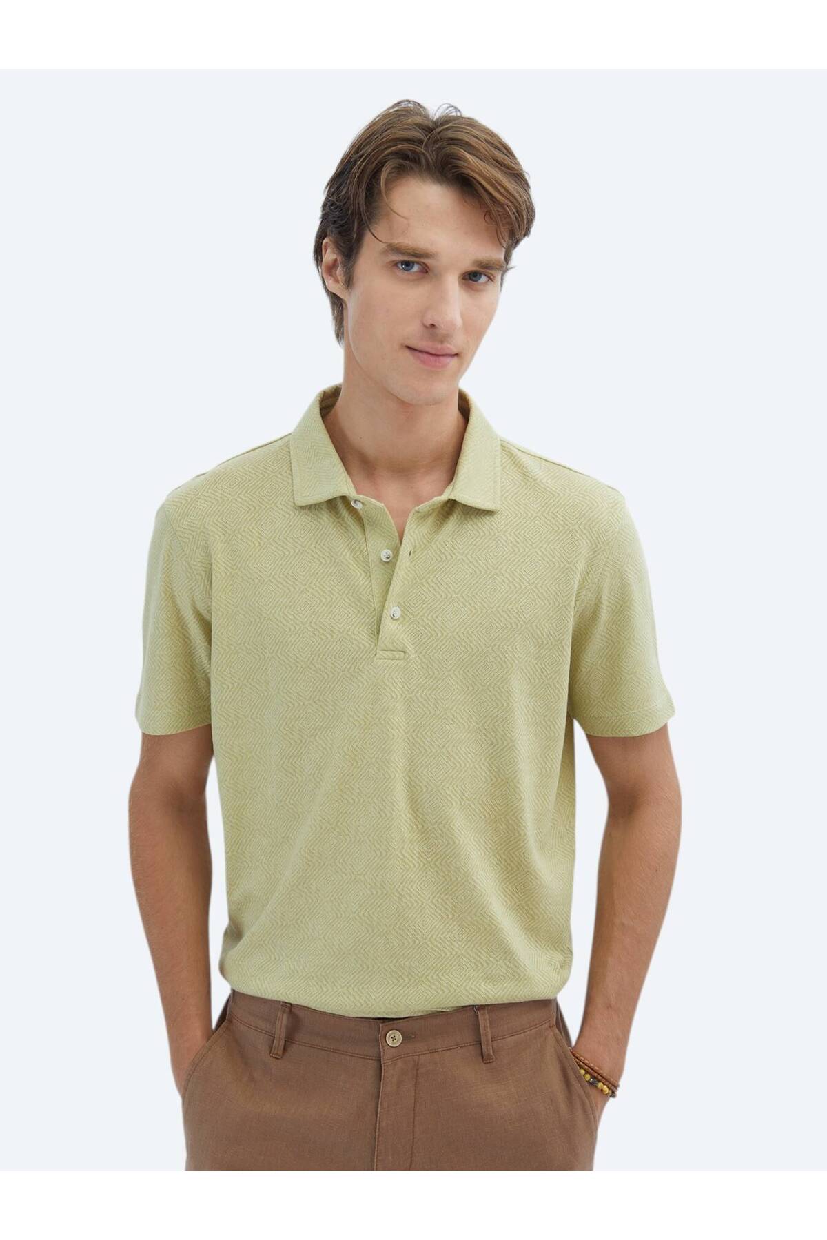 کیپ تی شرت نخی یقه پولو طرح دار طرح لیمویی
